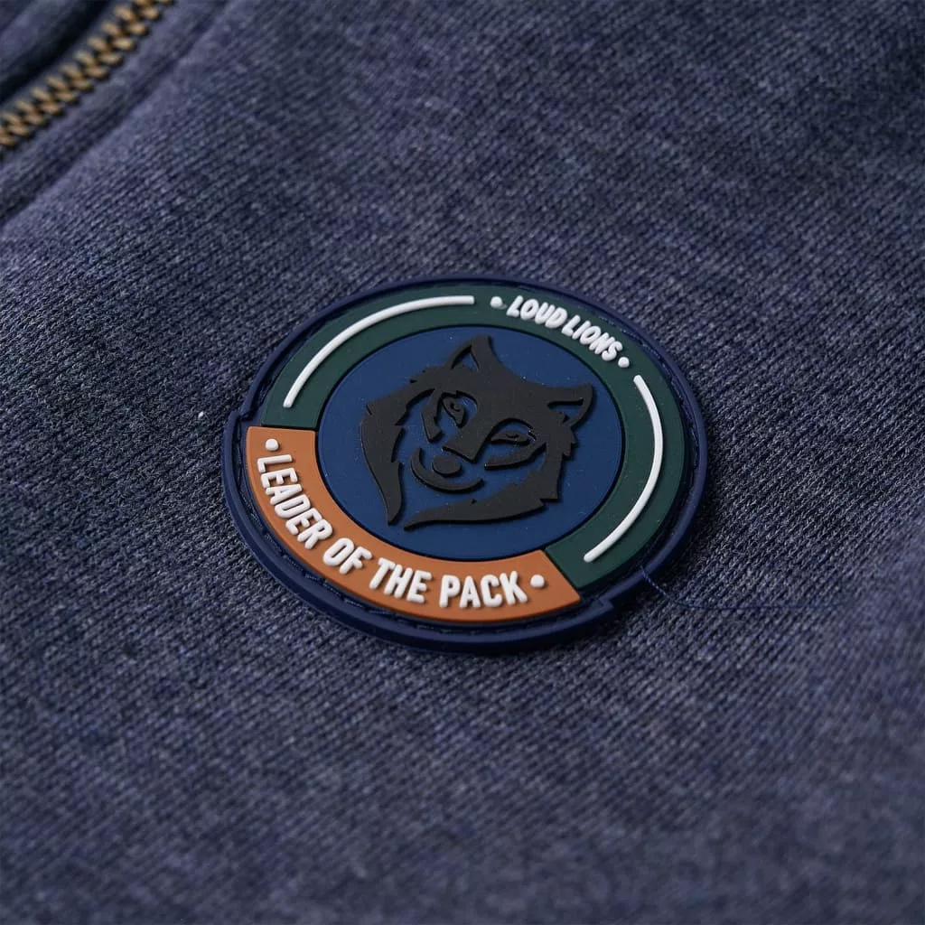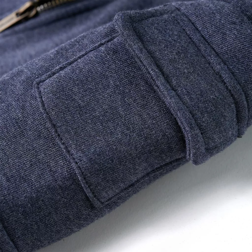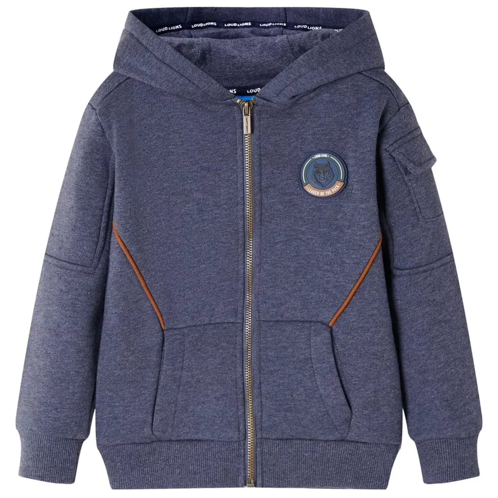 Sötétkék melange kapucnis gyerekpulóver cipzárral 92