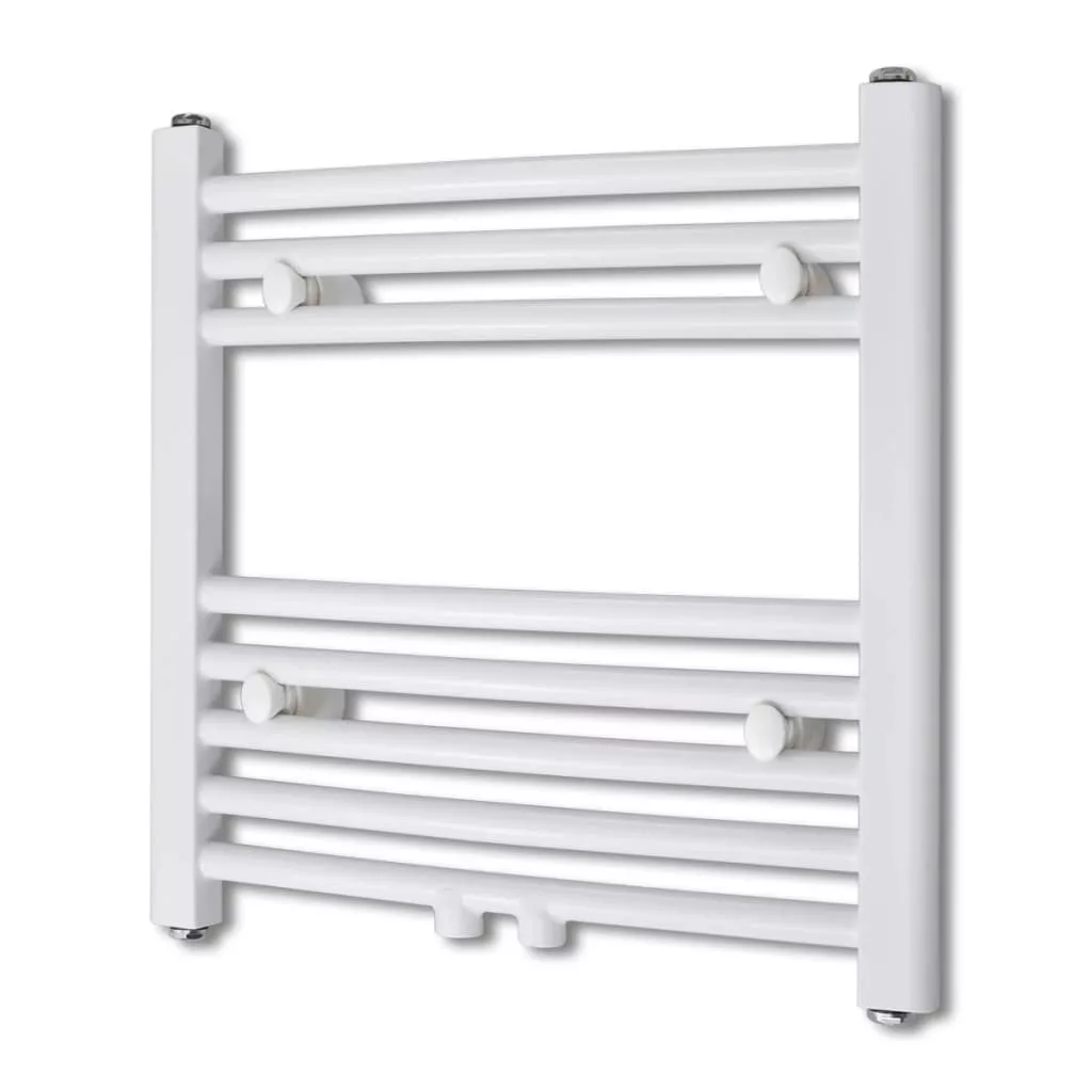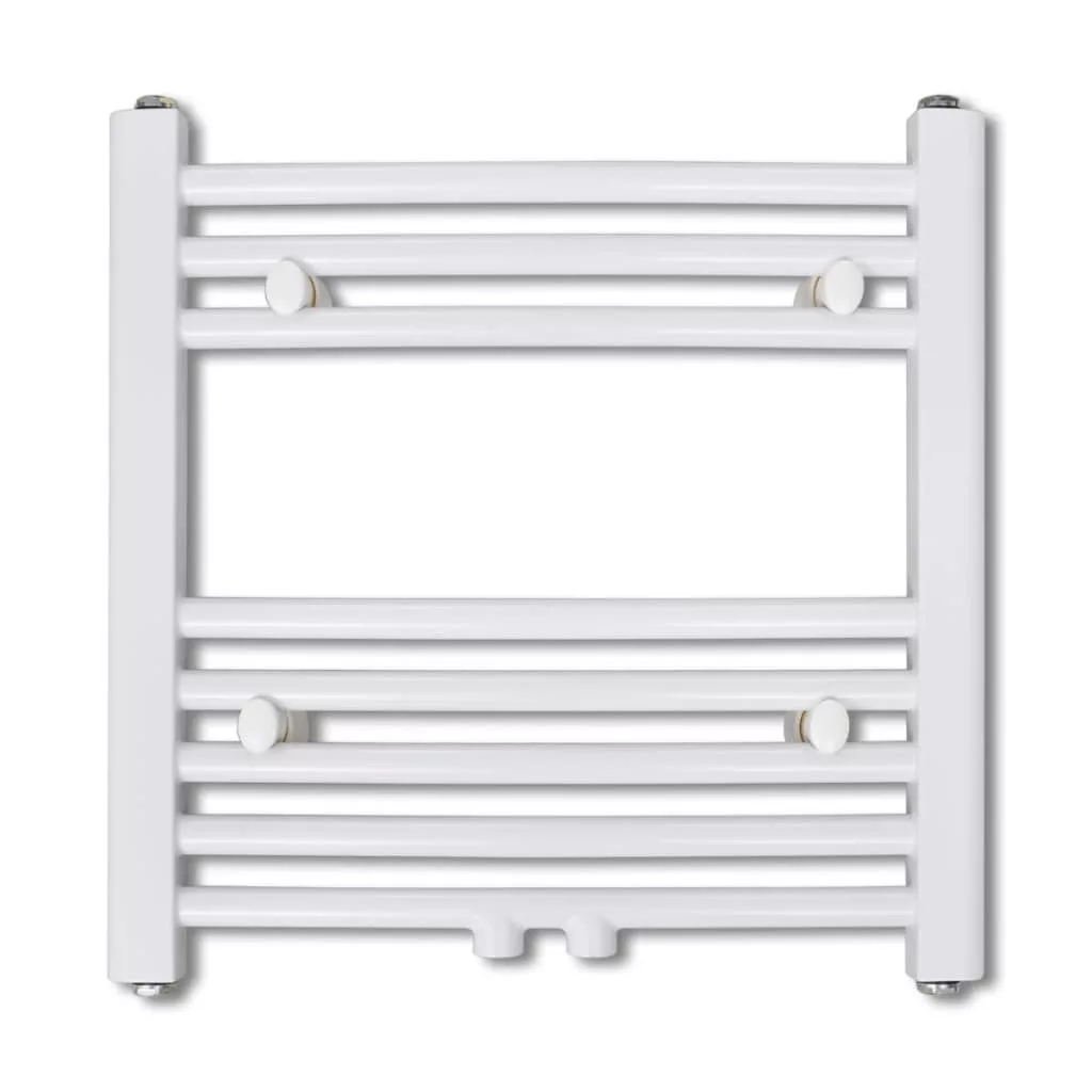 Fürdőszobai törölközőszárító radiátor központi fűtéssel oldalsó és középső csatlakozóval ívelt 480 x 480 mm