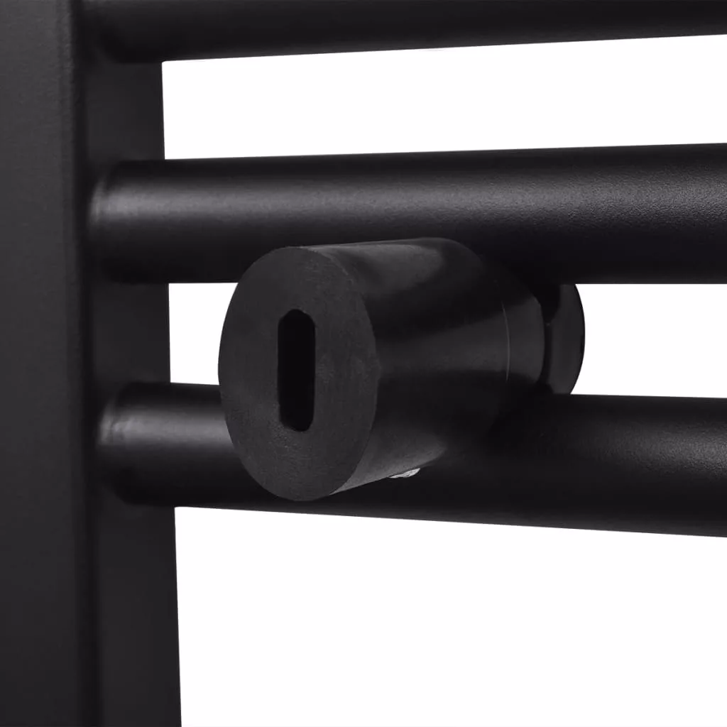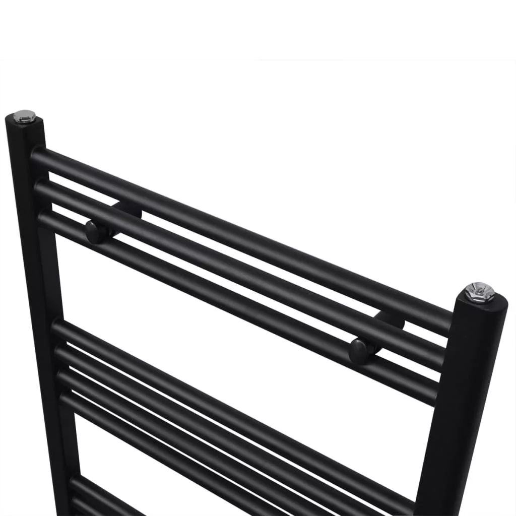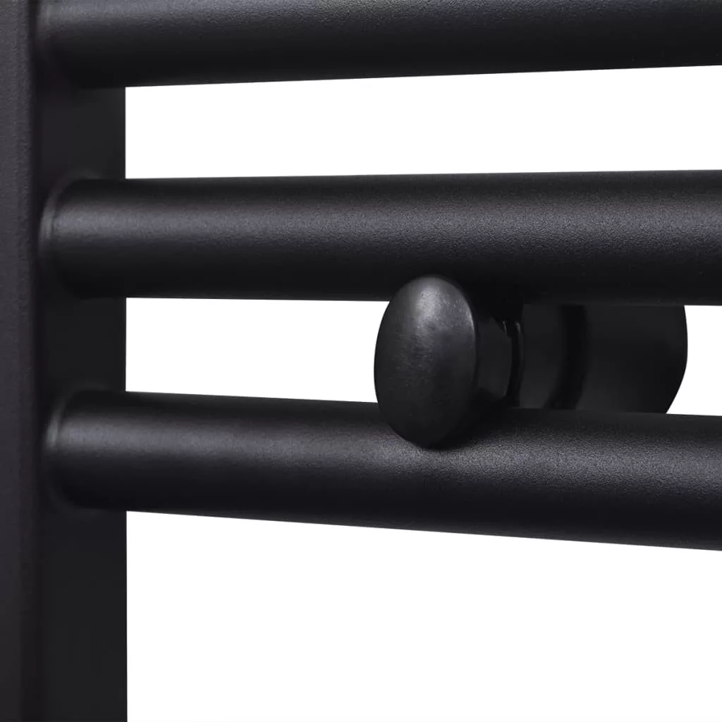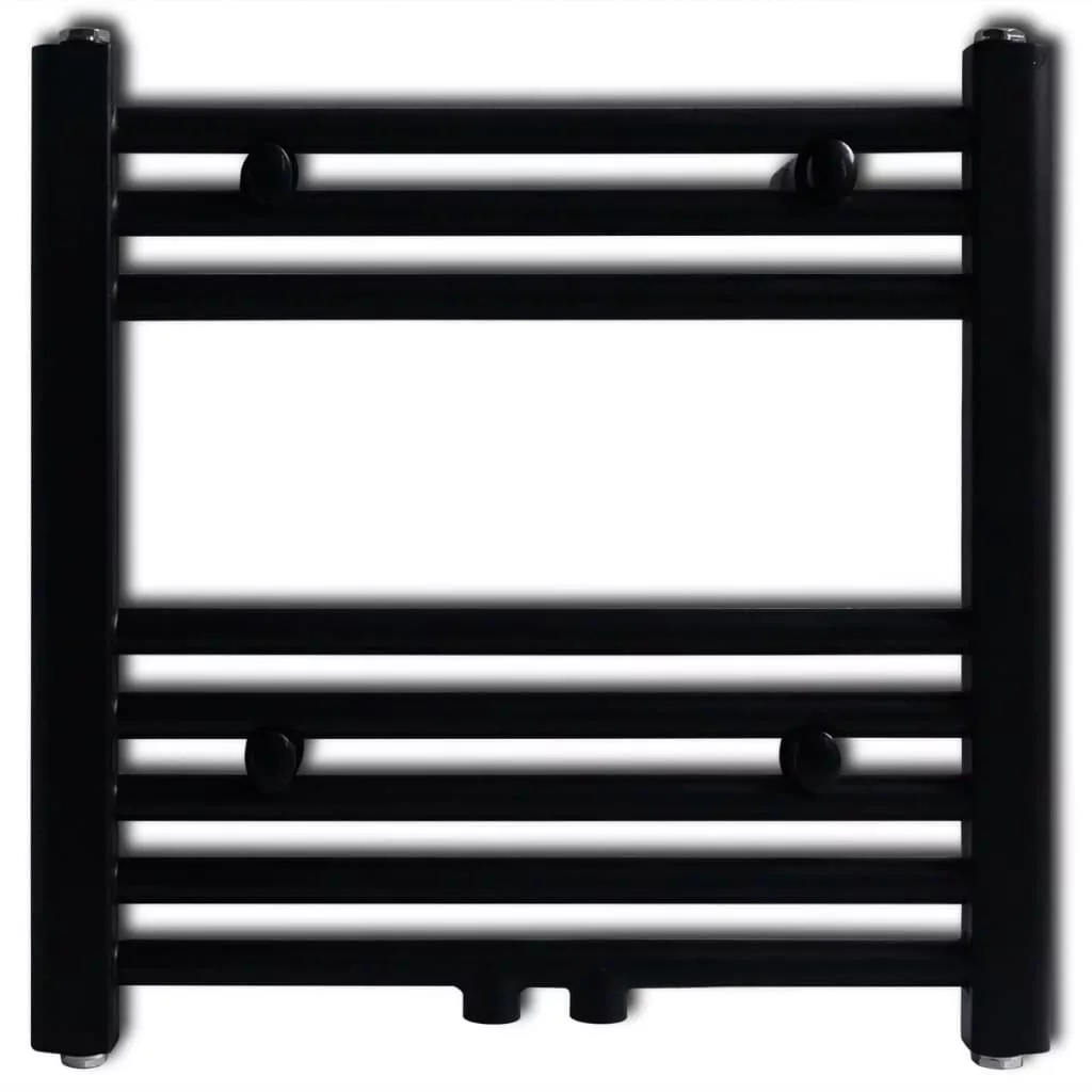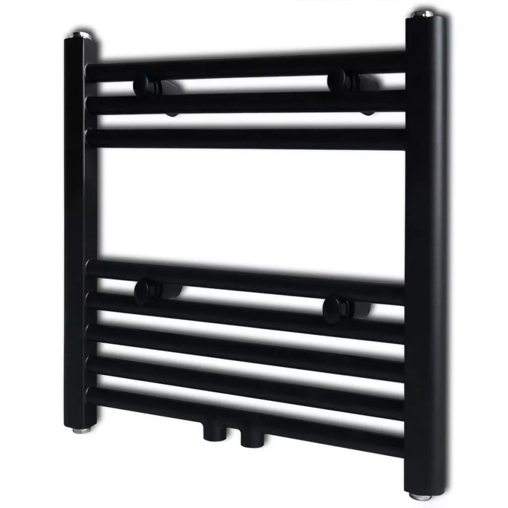 Fekete fürdőszobai egyenes törölközőtartó központi fűtéssel 480x480 mm