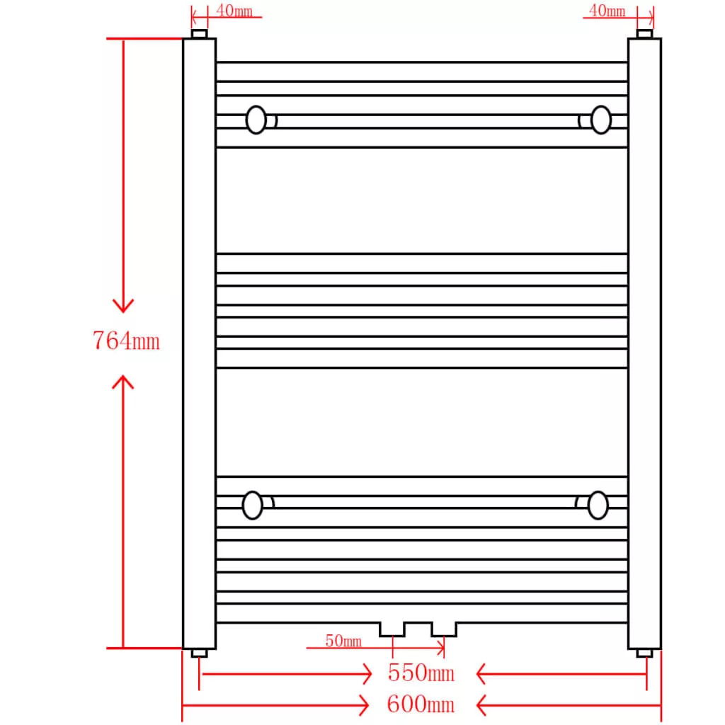 Ez a dupla-funkciós törölközőtartó radiátor törölközők szárítására és fűtőtestként is egyaránt használható. Segítségével melegen tartható a fürdő és megelőzhető a penész megjelenése, valamint nagyméretű törölközők és fürdőköpenyek is száríthatók rajta. A forróvíz-keringető rendszernek köszönhetően egy pillanat alatt megszáradnak a törölközői, anélkül, hogy elektromos áramot fogyasztana. A törölközőmelegítő 12 db 22 mm átmérőjű acélcsőből áll és feketére lett festve. A keresztcsövek extra vastagok, így jelentős hőkibocsátásra képesek. A felső és alsó cső vízbetöltő nyílással lett ellátva az optimális vízáramlás érdekében. Könnyen összeszerelhető és karbantartható A szállítmány 1 db törülközőtartó radiátort, fali konzolokat és csavarokat tartalmaz. A gyermekeket felügyelni kell, hogy ne játsszanak a készülékkel. Tartsa távol a gyerekeket az összeszerelési területtől. Figyelem: Használat előtt figyelmesen olvassa el az utasításokat, és őrizze meg további hivatkozás céljából.