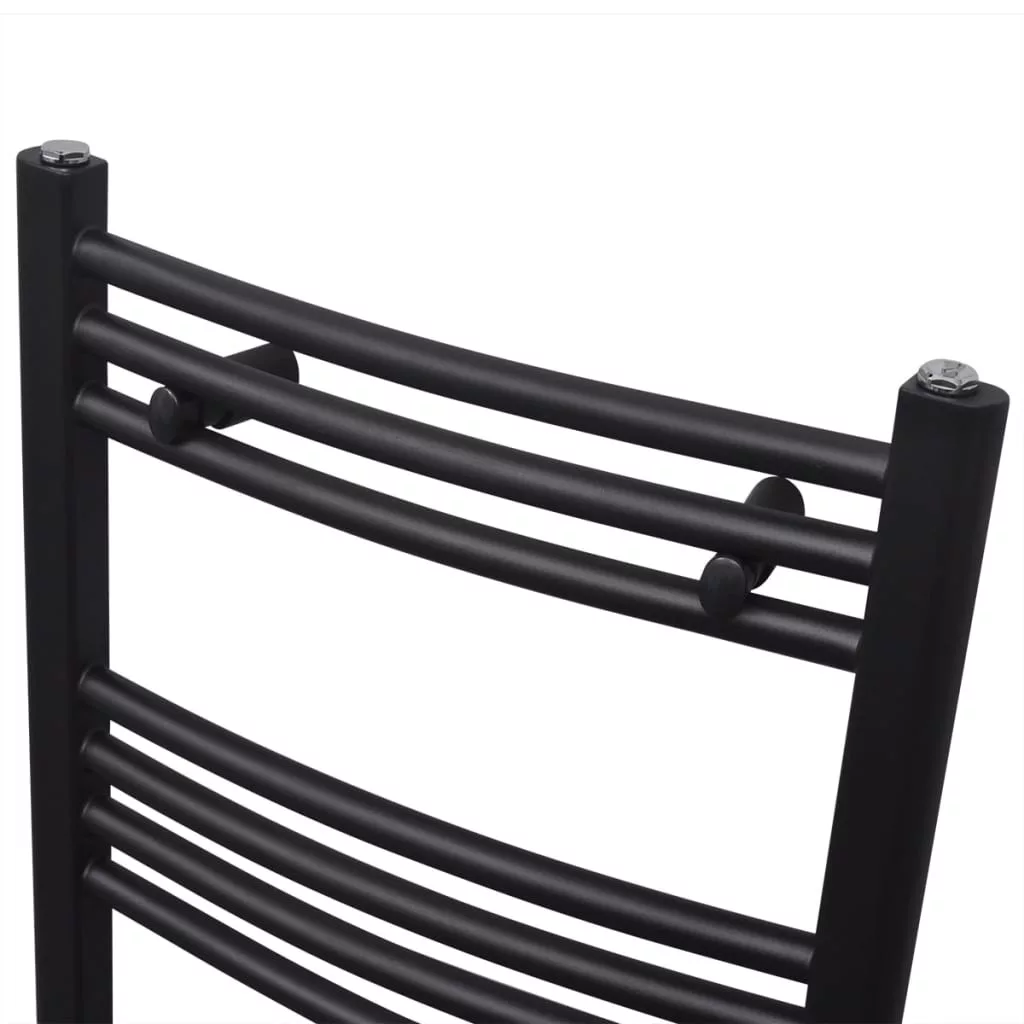 Fekete fürdőszobai íves törölközőtartó központi fűtéssel 500x1160 mm