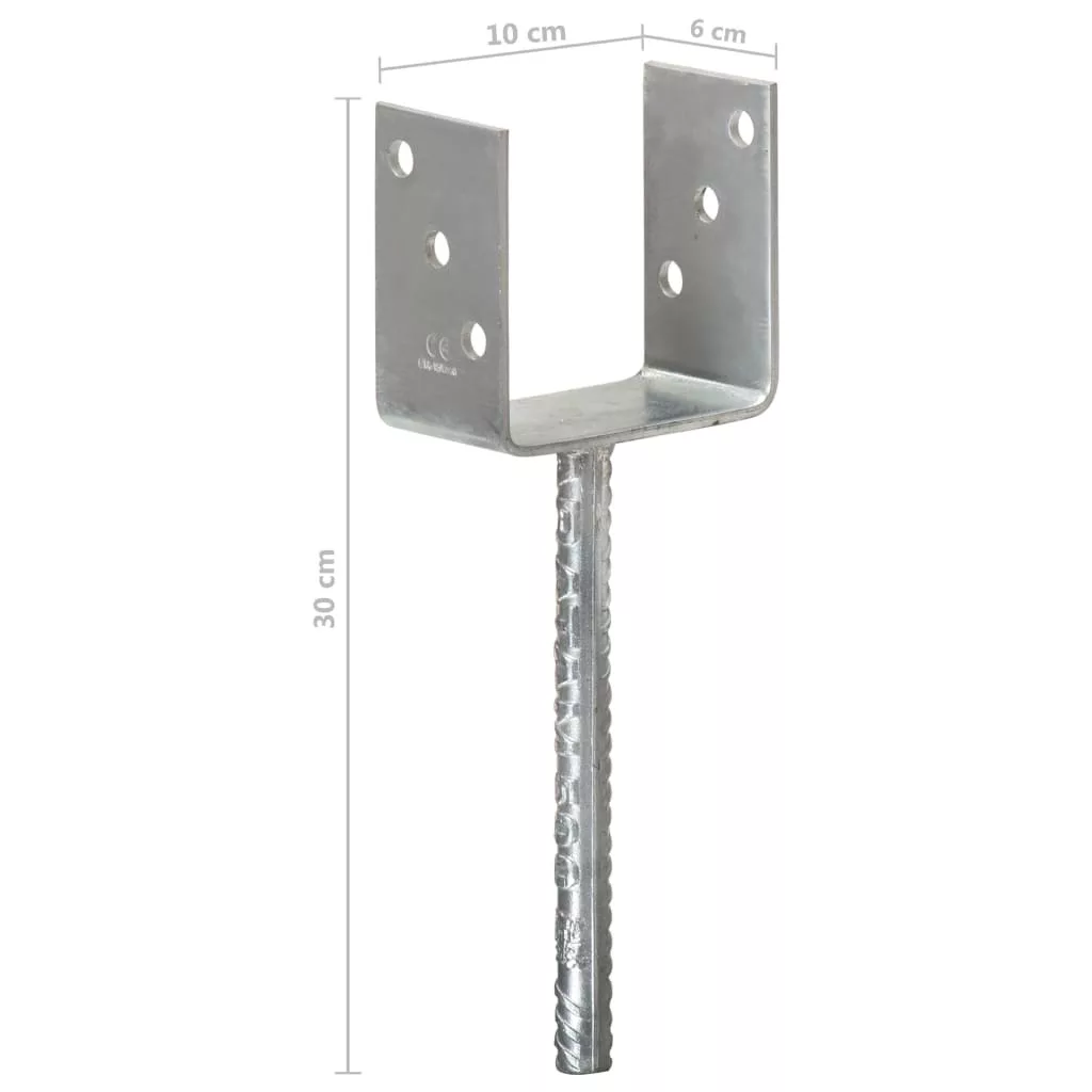 6 db ezüstszínű horganyzott acél kerítéshorgony 10 x 6 x 30 cm