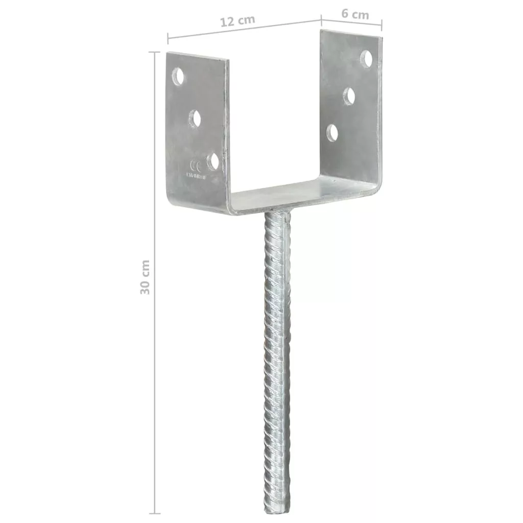 6 db ezüstszínű horganyzott acél kerítéshorgony 12 x 6 x 30 cm