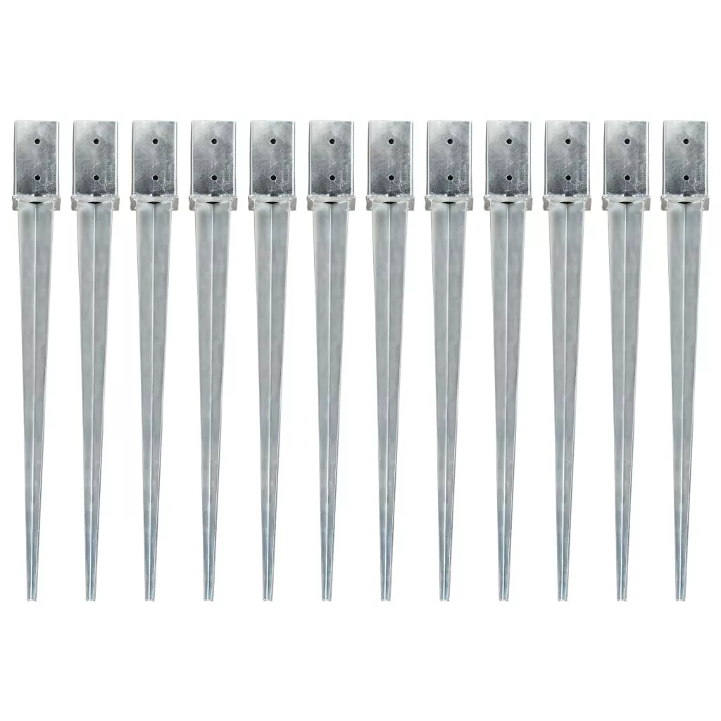 12 db ezüstszínű horganyzott acél kerítéstüske 8 x 8 x 91 cm