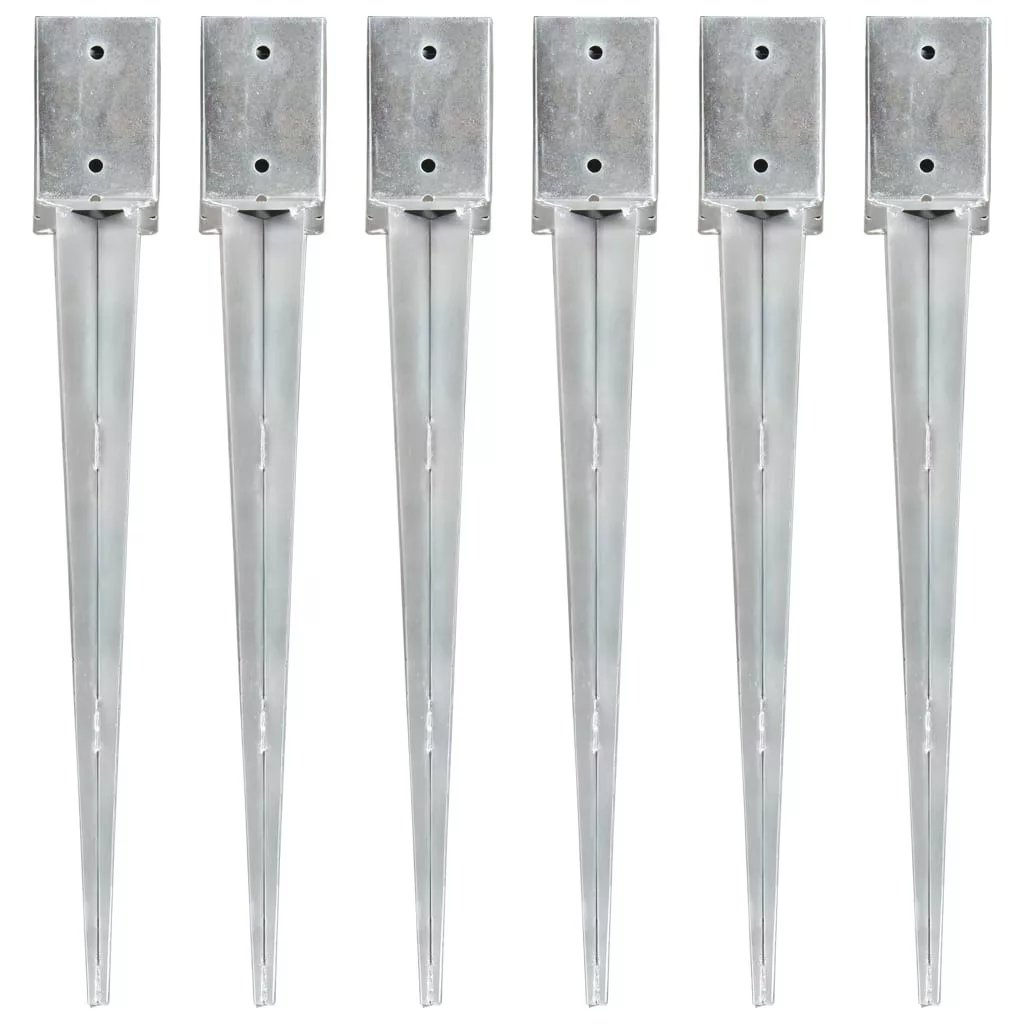 6 db ezüstszínű horganyzott acél kerítéstüske 9 x 9 x 75 cm