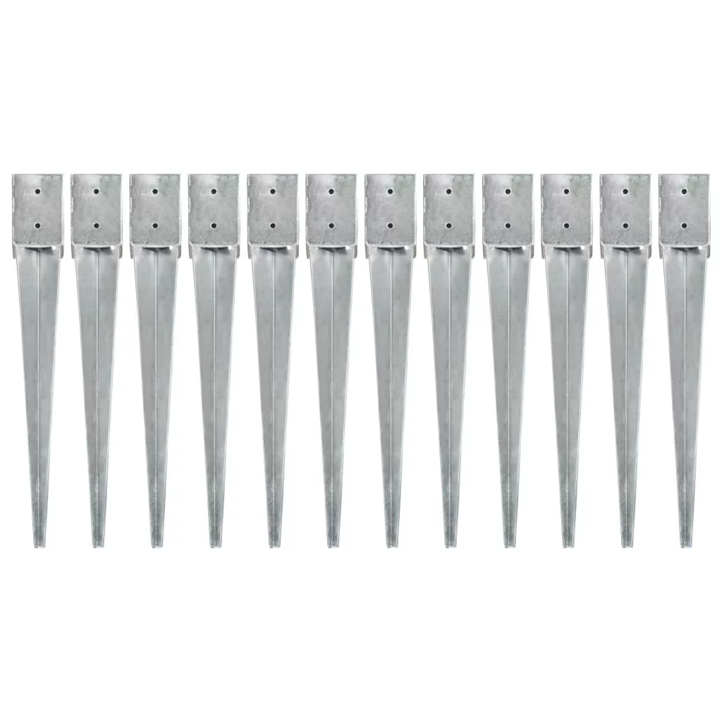 12 db ezüstszínű horganyzott acél kerítéstüske 10 x 10 x 76 cm