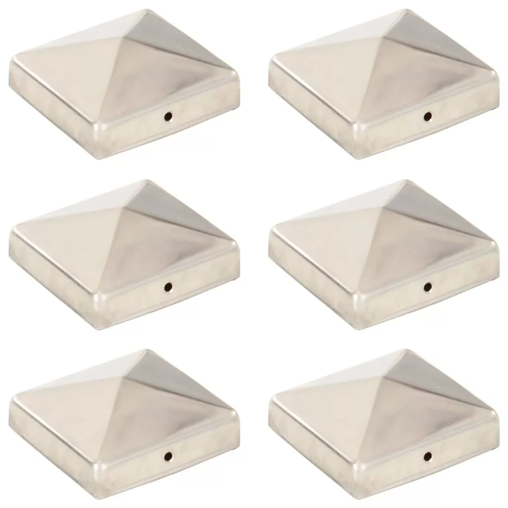 6 db gúla alakú rozsdamentes acél kerítésoszlop-sapka 81x81 mm