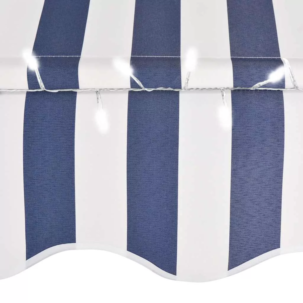 kék és fehér kézzel kihúzható LED-es napellenző 300 cm