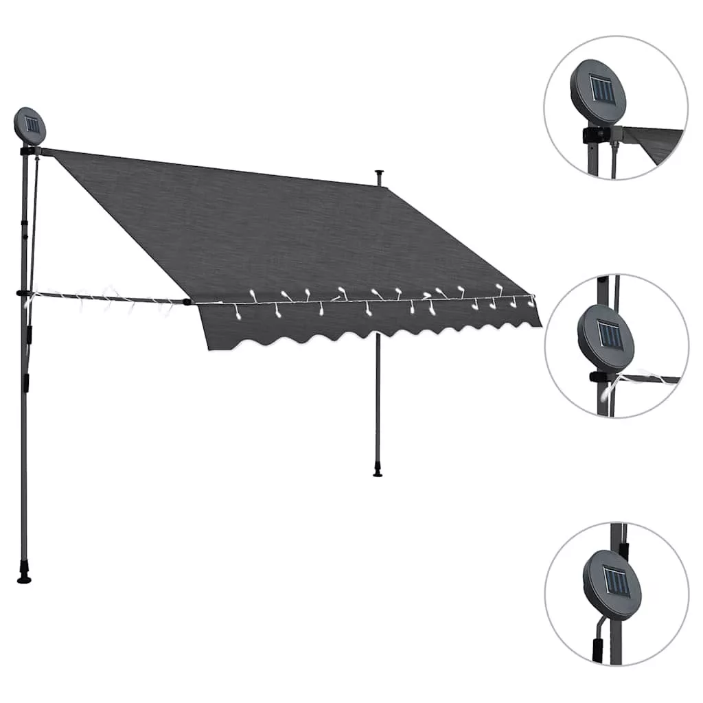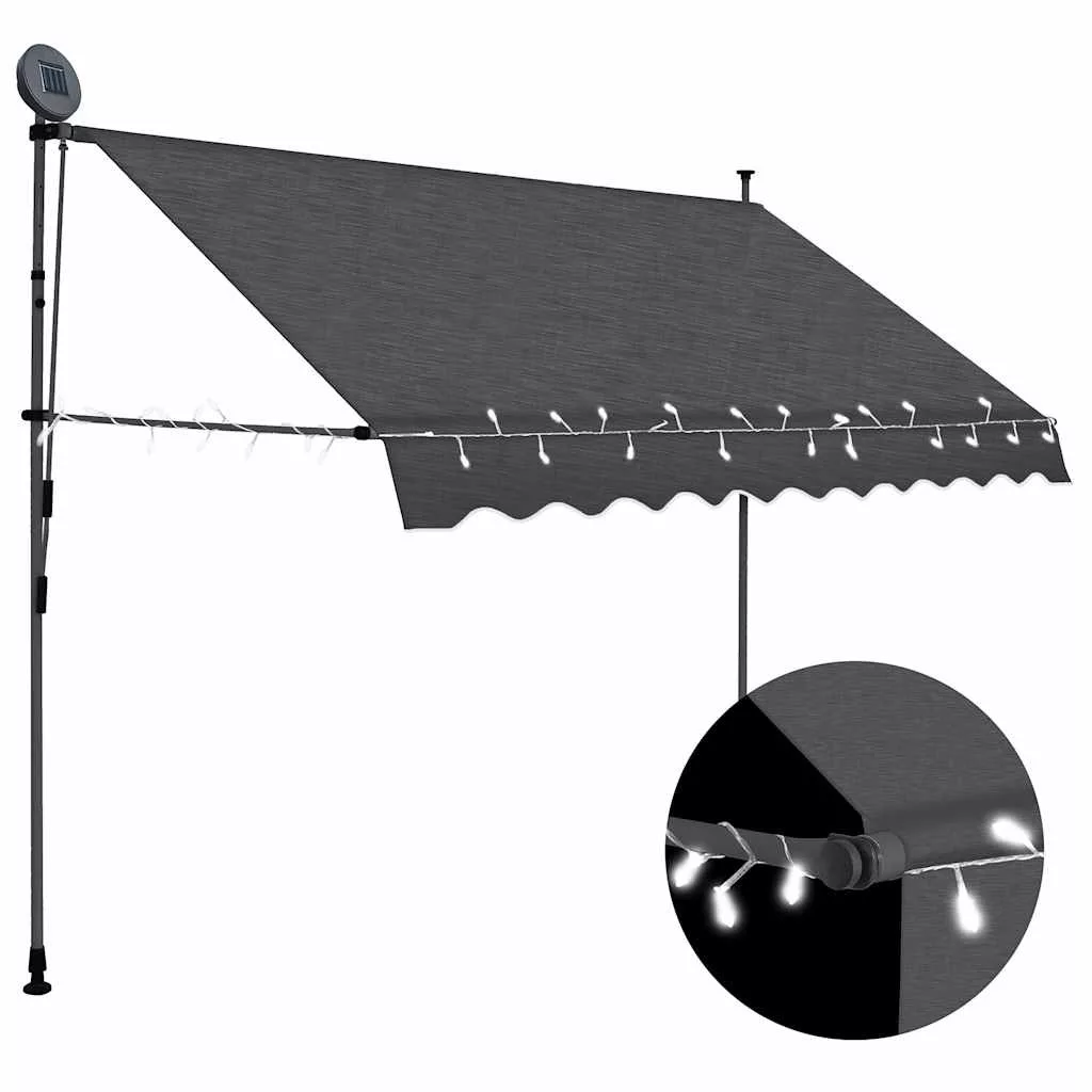antracitszürke kézzel kihúzható LED-es napellenző 300 cm