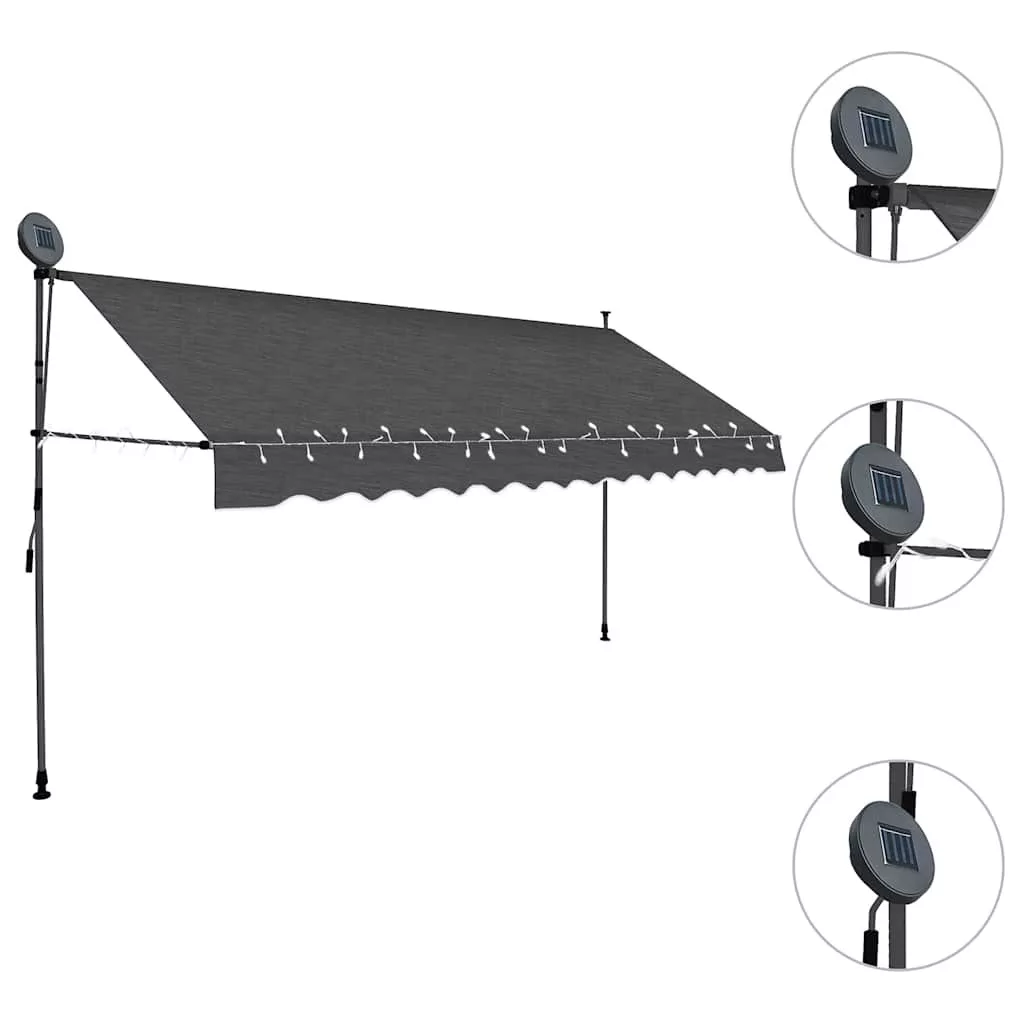 antracitszürke kézzel kihúzható LED-es napellenző 400 cm