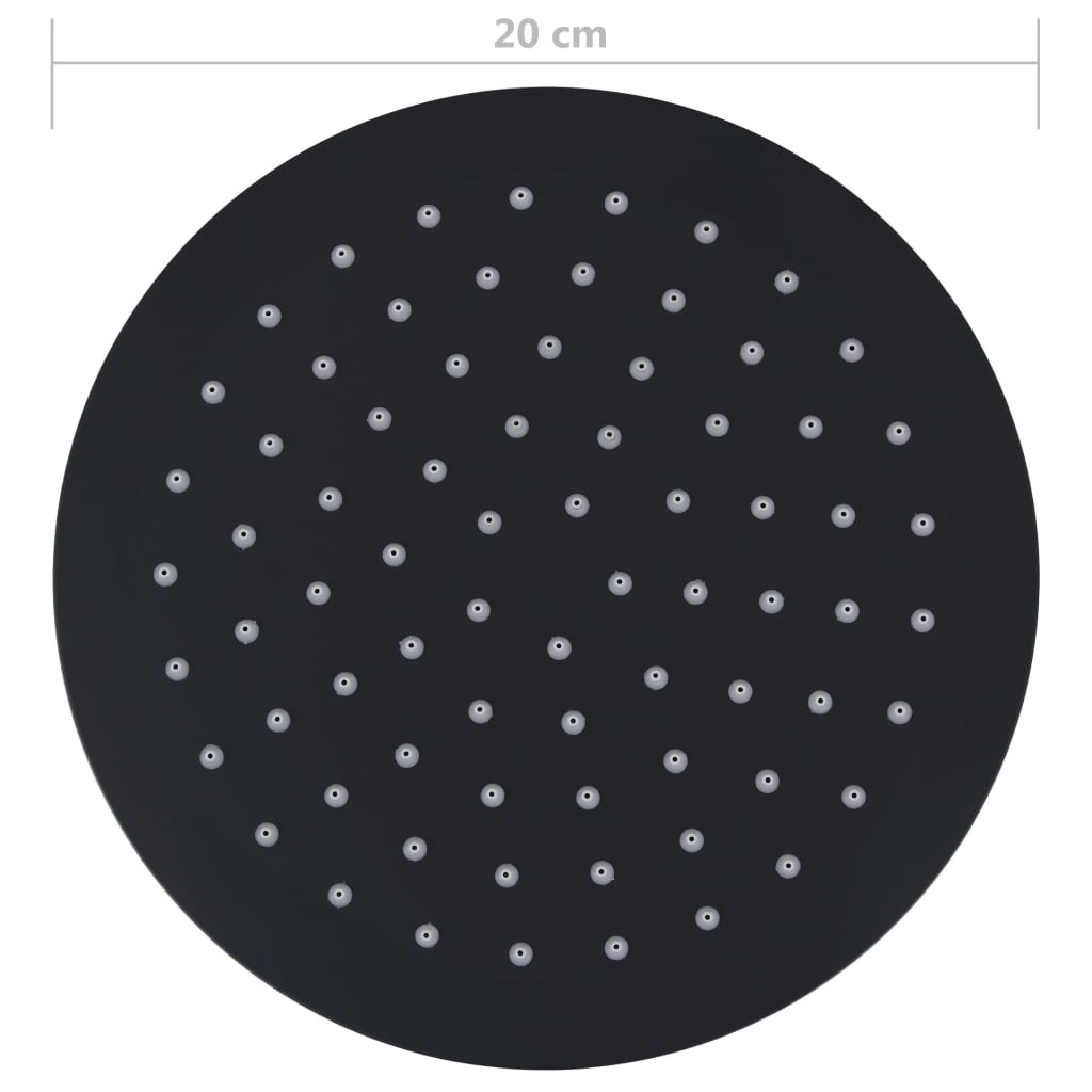 fekete kerek rozsdamentes acél esőztető zuhanyfej 20 cm