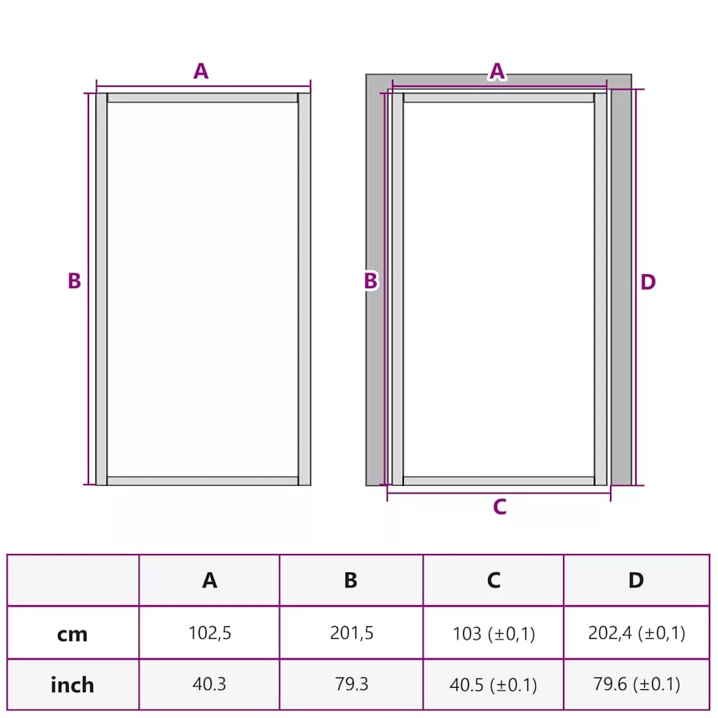 Ajtó mérete: 102,5 x 201,5 cm (Szé x Ma)