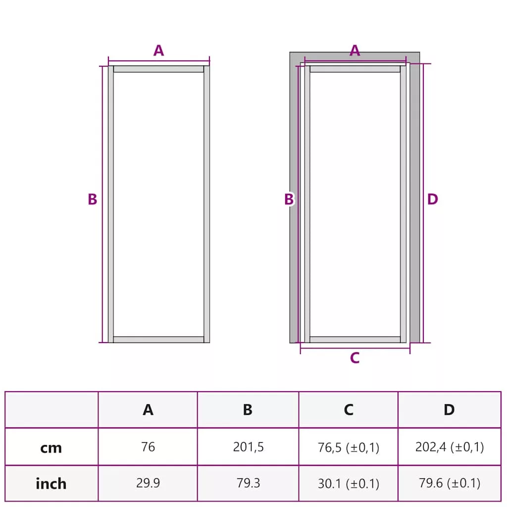 Ajtó mérete: 76 x 201,5 cm (Szé x Ma)