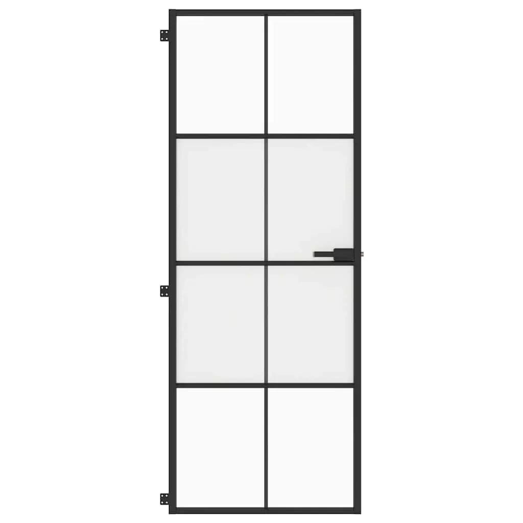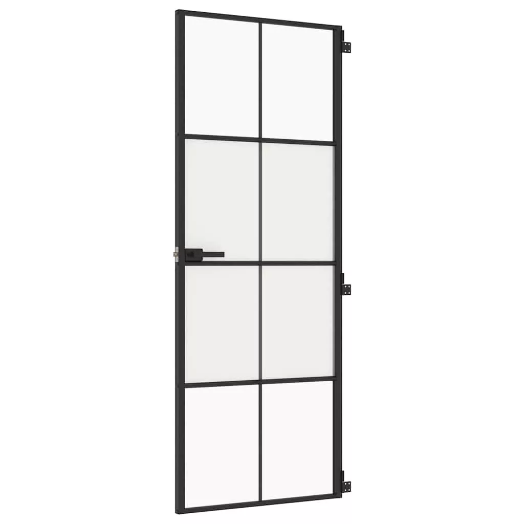 fekete edzett üveg és alumínium vékony beltéri ajtó 76x201,5 cm