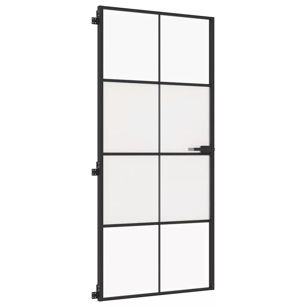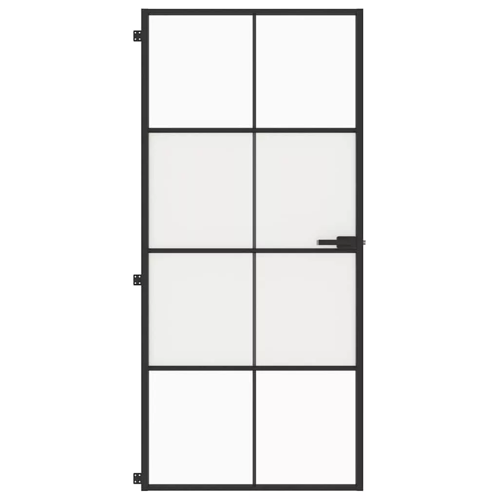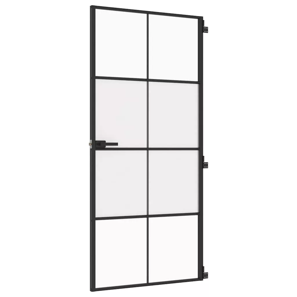 fekete edzett üveg és alumínium vékony beltéri ajtó 93x201,5 cm