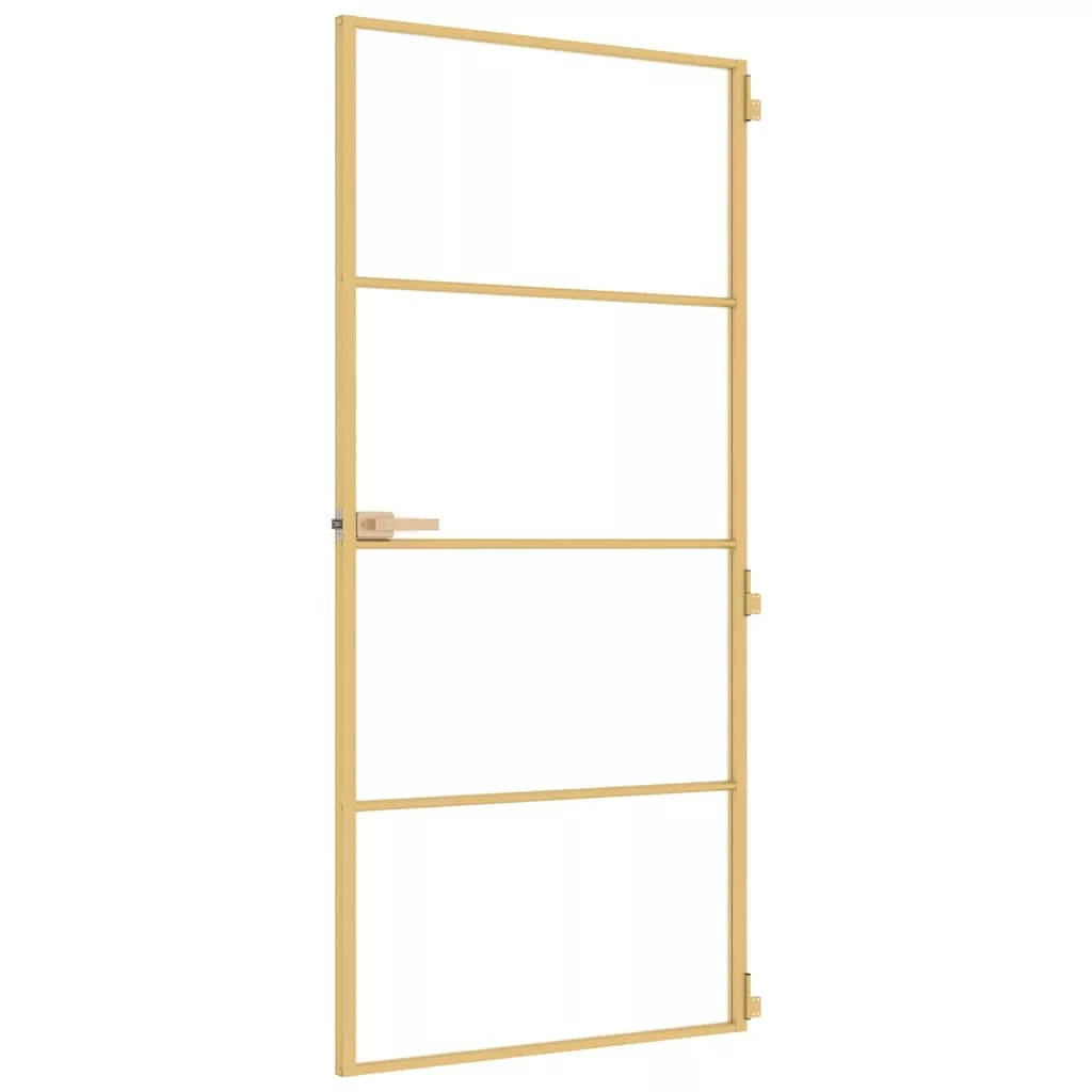 arany edzett üveg és alumínium vékony beltéri ajtó 93x201,5 cm
