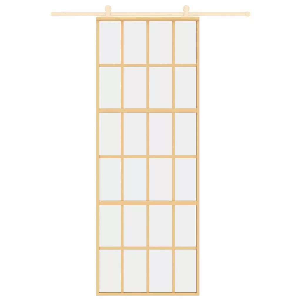 aranyszínű átlátszó ESG üveg és alumínium tolóajtó 76 x 205 cm