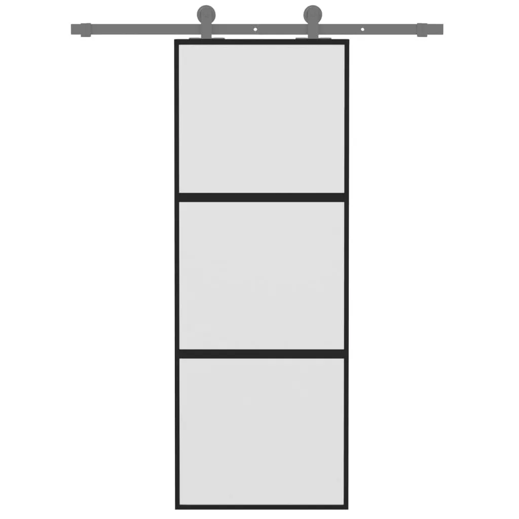 fekete edzett üveg és alumínium tolóajtó 76 x 205 cm