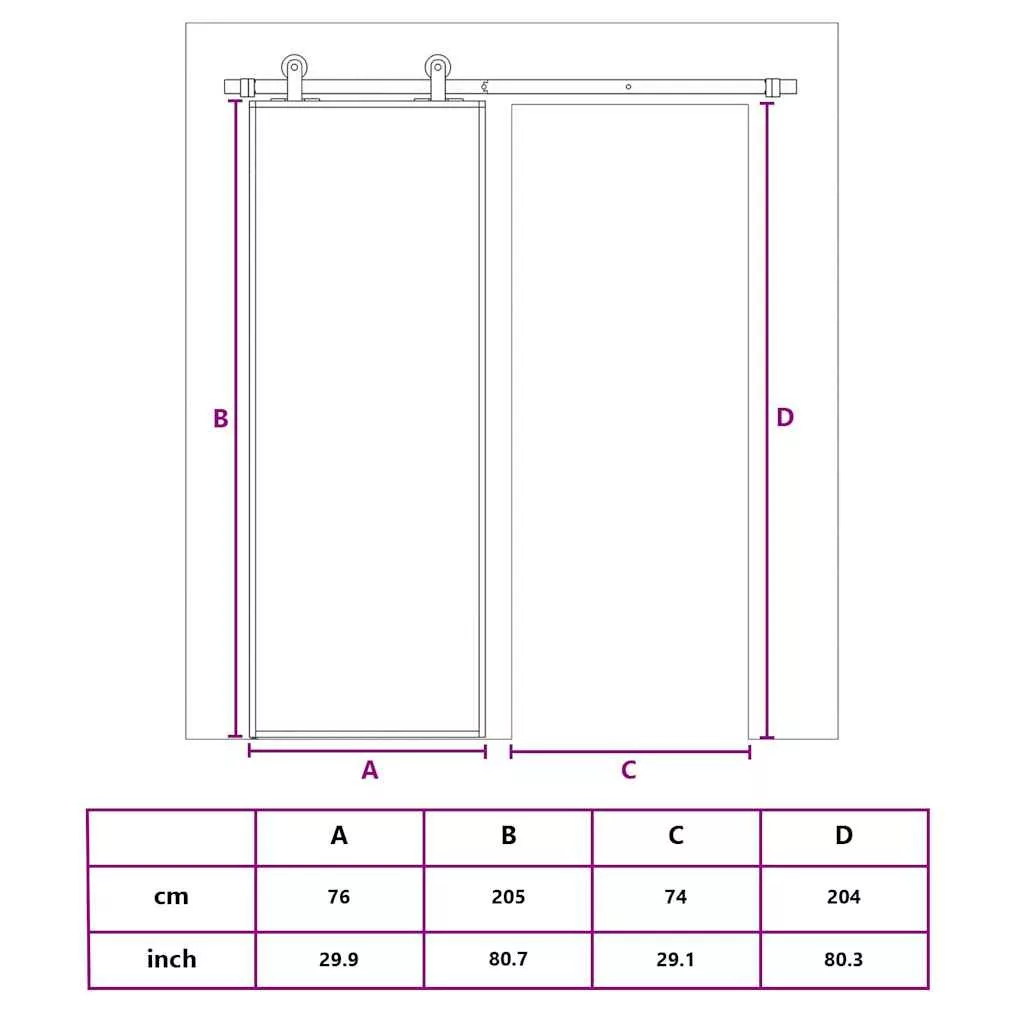 fekete edzett üveg és alumínium tolóajtó 76 x 205 cm