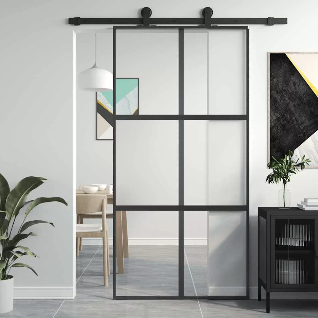fekete edzett üveg és alumínium tolóajtó 102,5 x 205 cm