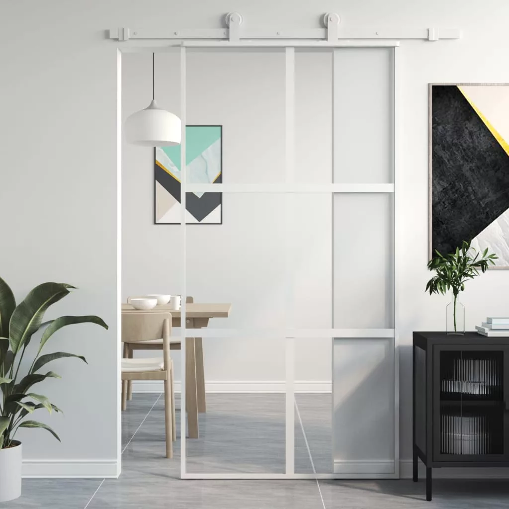 fehér edzett üveg és alumínium tolóajtó 102,5 x 205 cm