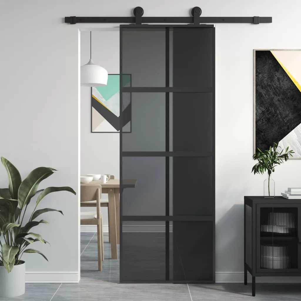 fekete edzett üveg és alumínium tolóajtó 76 x 205 cm