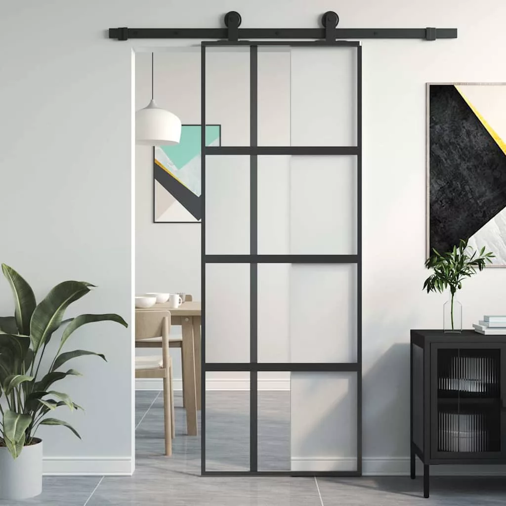 fekete edzett üveg és alumínium tolóajtó 76 x 205 cm
