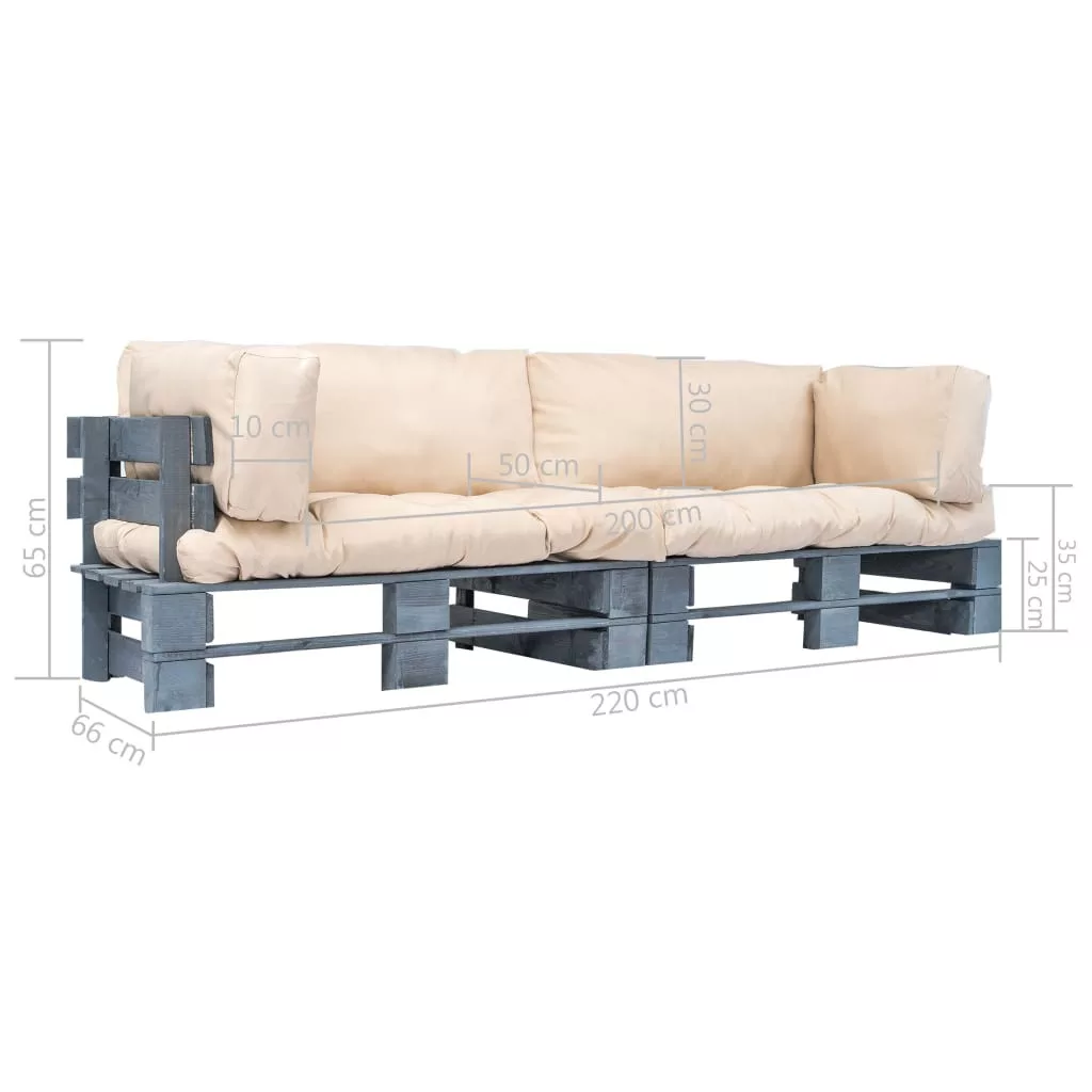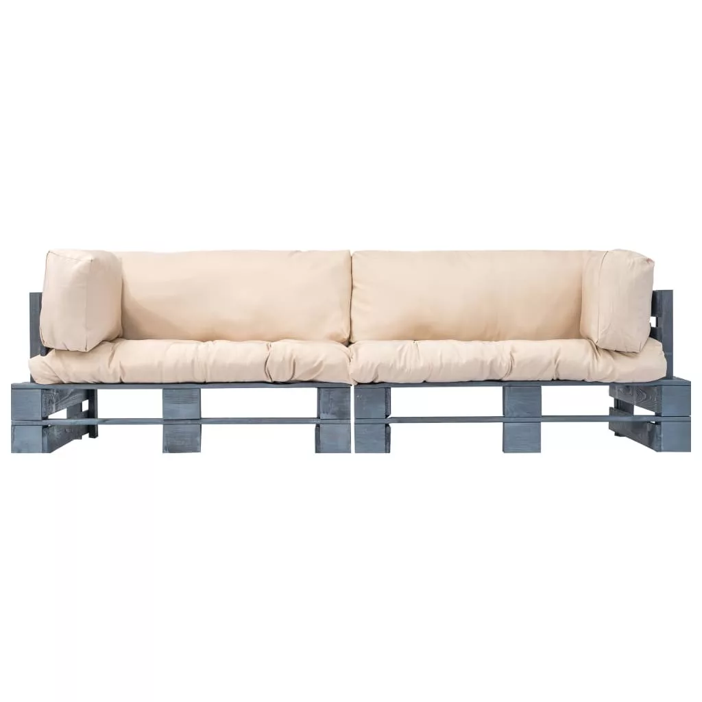 2 részes fenyőfa kerti raklapkanapé homokszínű párnákkal