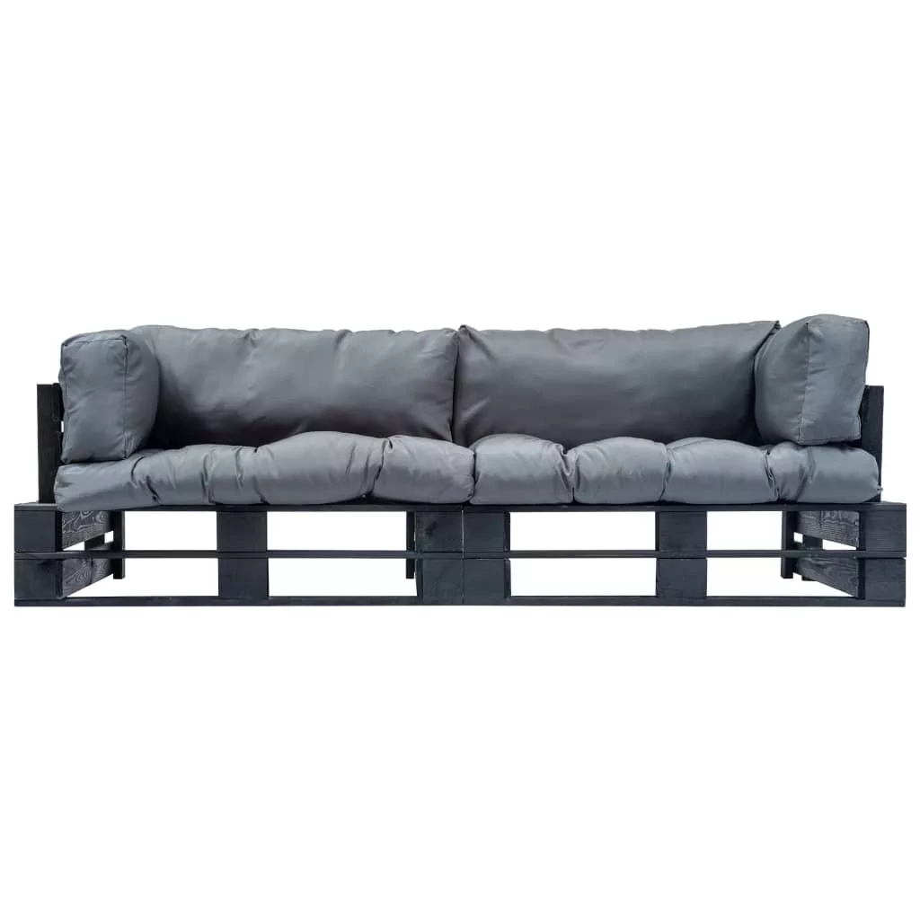 2 részes fenyőfa kerti raklapkanapé garnitúra szürke párnákkal