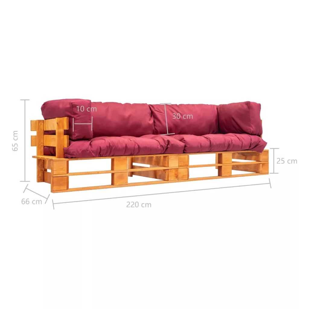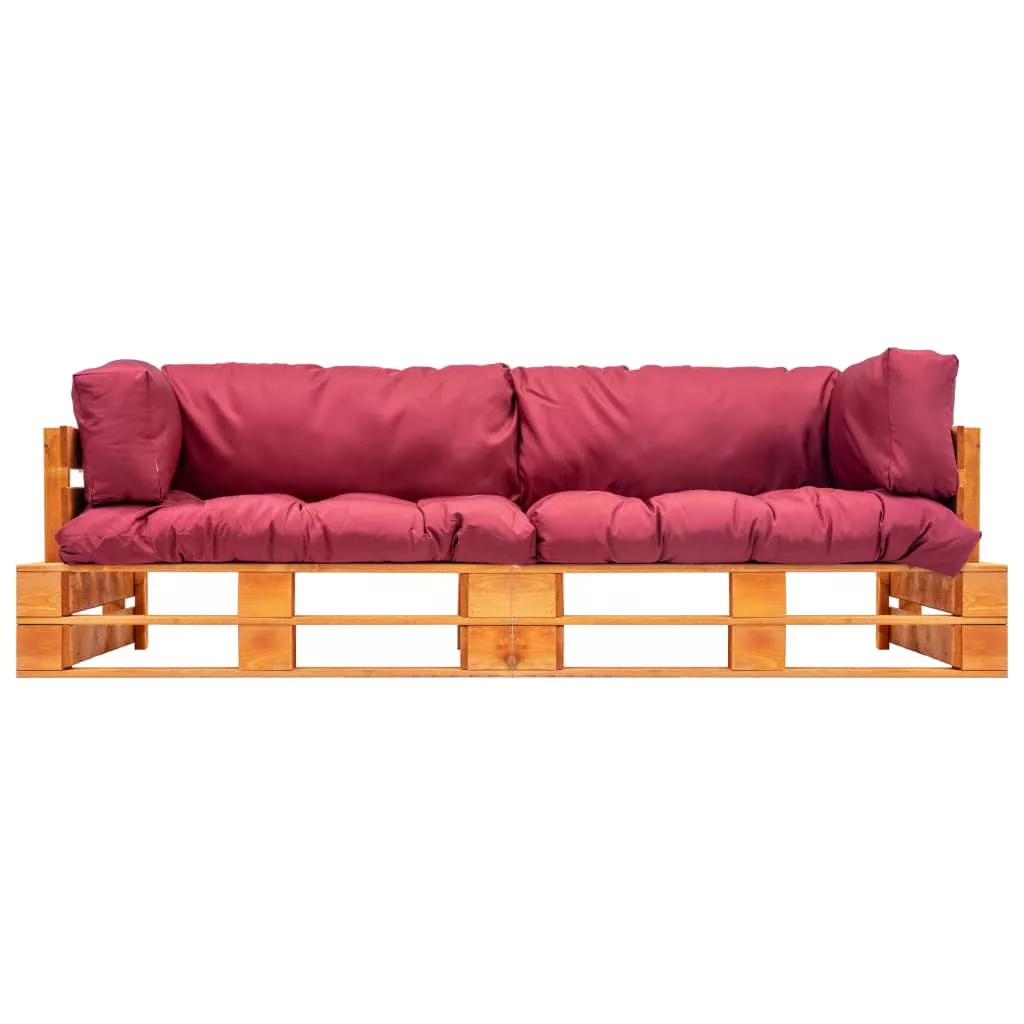 2 részes fenyőfa kerti raklapkanapé piros párnákkal