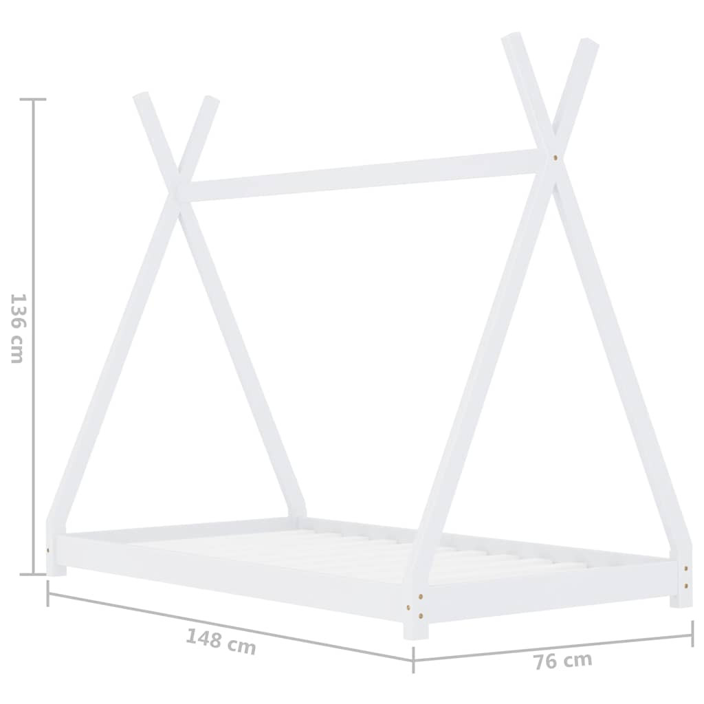 Hozza létre a tökéletes kuckót a gyerekszobában fantasztikus ágykeretünkkel! Az ágy újdonsága a menő tipisátrak által ihletett keresztirányú keret, ahová felfüggesztheti az ágyfüggönyöket, privát teret biztosítva gyermekének. Olvasósarokként vagy játszóházként is használható. A tömör fenyőfából készült ágykeret rendkívül masszív és tartós. Az erős lécek megfelelő támaszt biztosítanak, és nagyon kényelmesek. Ez az ágykeret 70 x 140 cm méretű matracokhoz illik. Felhívjuk figyelmét, hogy a szállítmány csak ágykeretet tartalmaz, matracot nem. Az ágykeretet könnyű összeszerelni. Az ágyhoz illő matracokat megtekintheti áruházunkban. Figyelmeztetés 4 éves kor alatti gyermekek számára nem alkalmas. FIGYELEM. Ne helyezze a gyermekágyat hőforrások, ablakok és egyéb bútorok közelébe. FIGYELEM. Ne használja ezt a gyermekágyat, ha valamelyik része eltört, elszakadt vagy hiányzik.