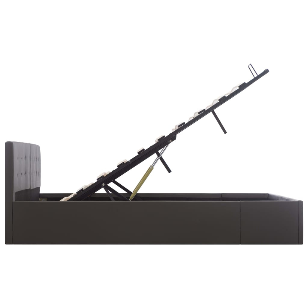 szürke műbőr ágykeret hidraulikus ágyneműtartóval 160 x 200 cm