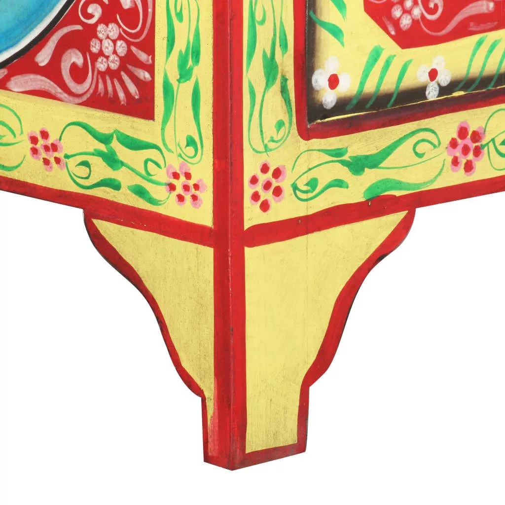 Ez a kézzel festett elemekkel díszített, gyönyörű éjjeliszekrény magára vonzza a tekinteteket hálószobájában színes megjelenésével. Ez az éjjeliszekrény MDF-ből és mangófából készült kézzel, így időtálló és gyönyörű, a kézműves kialakítás pedig kiemeli retró stílusát. A munkafolyamat minden lépése a legnagyobb odafigyeléssel lett elvégezve, legyen szó a csiszolásról, a festésről vagy a lakkozásról. Az éjjeliszekrény átfogó, kézzel készült díszítőelemekkel lett ellátva, ennek köszönhetően nagyon megkapó, és részleteiben gazdag. Az éjjeliszekrény stabil tetején elhelyezheti éjjeli lámpáját, ébresztőóráját vagy bármi mást, amire szüksége van az ágya mellett. A fiókok bőséges helyet kínálnak kisebb tárgyai rendezett, kézközelben való tárolásához. A termék összeszerelve érkezik; további szerelést nem igényel.