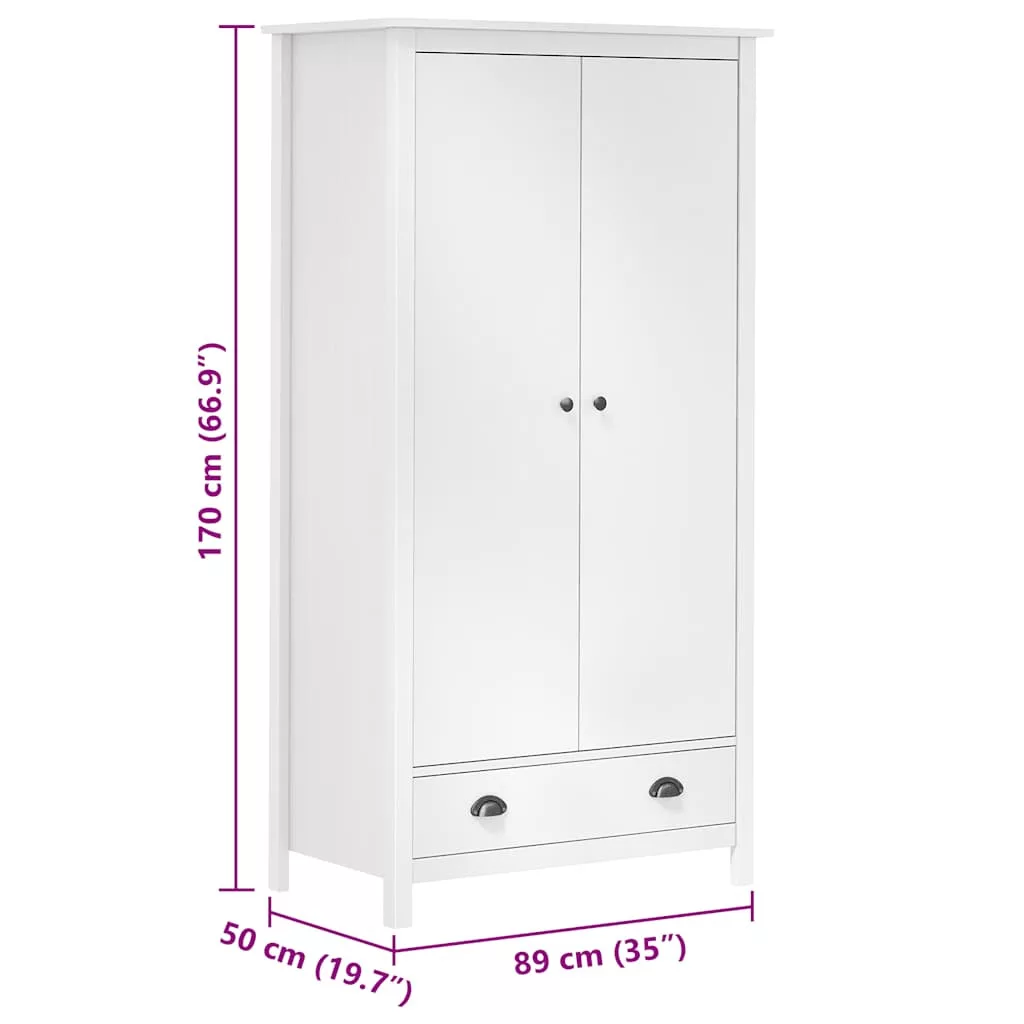 Hill fehér 2 ajtós tömör fenyőfa ruhásszekrény 89 x 50 x 170 cm