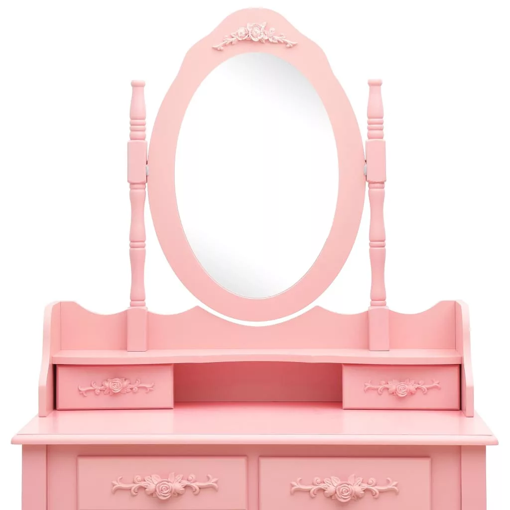 rózsaszín császárfa fésülködőasztal-szett ülőkével 75x69x140 cm