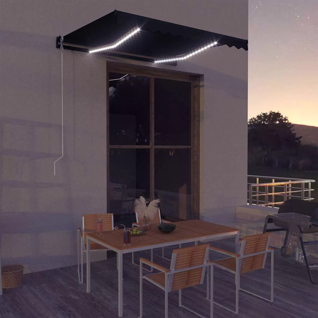 antracitszürke kézzel kihúzható LED-es napellenző 300 x 250 cm