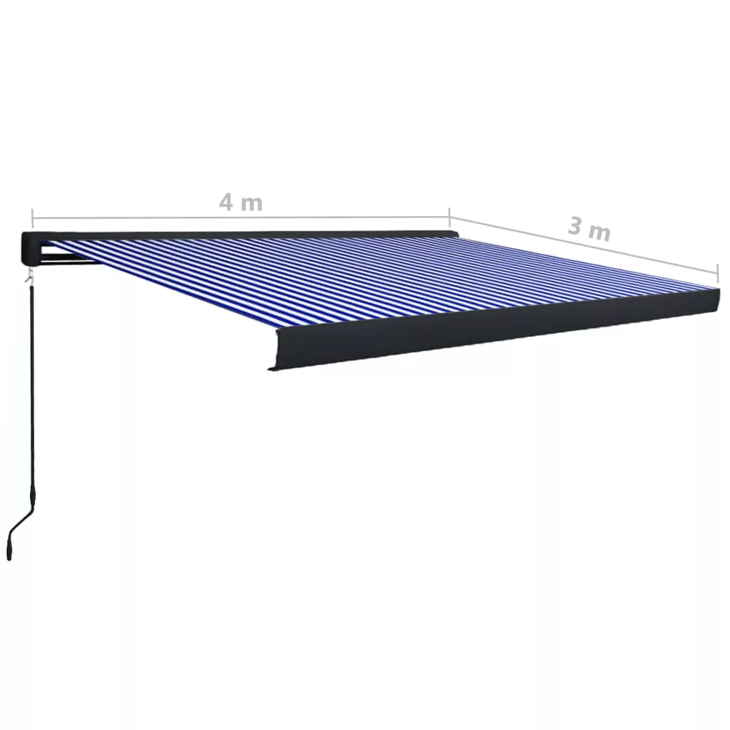 kék és fehér manuális kazettás napellenző 400 x 300 cm
