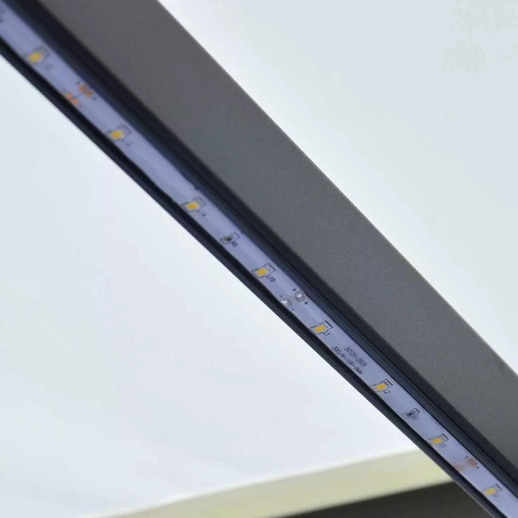 krémszínű kézzel kihúzható LED-es napellenző 300 x 250 cm