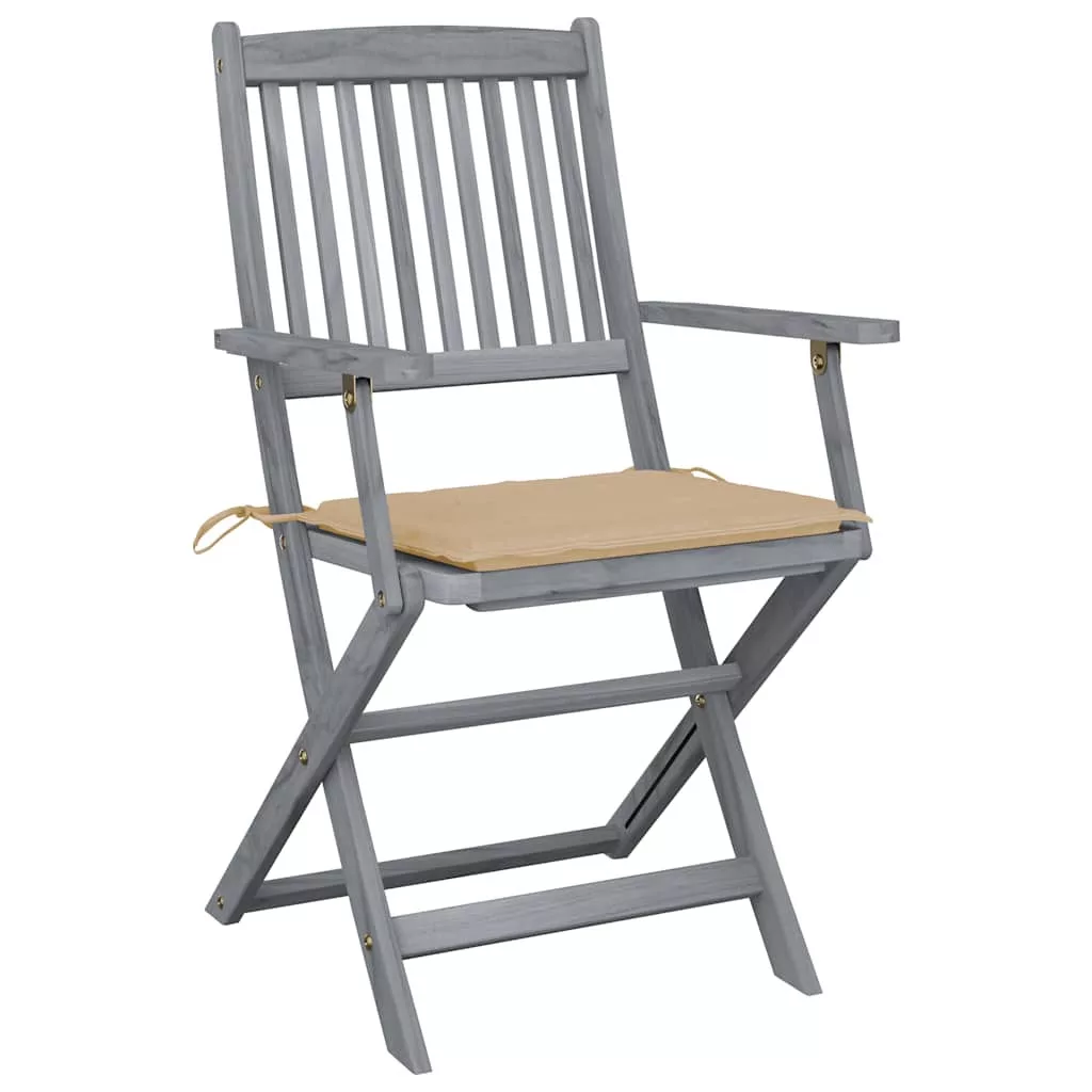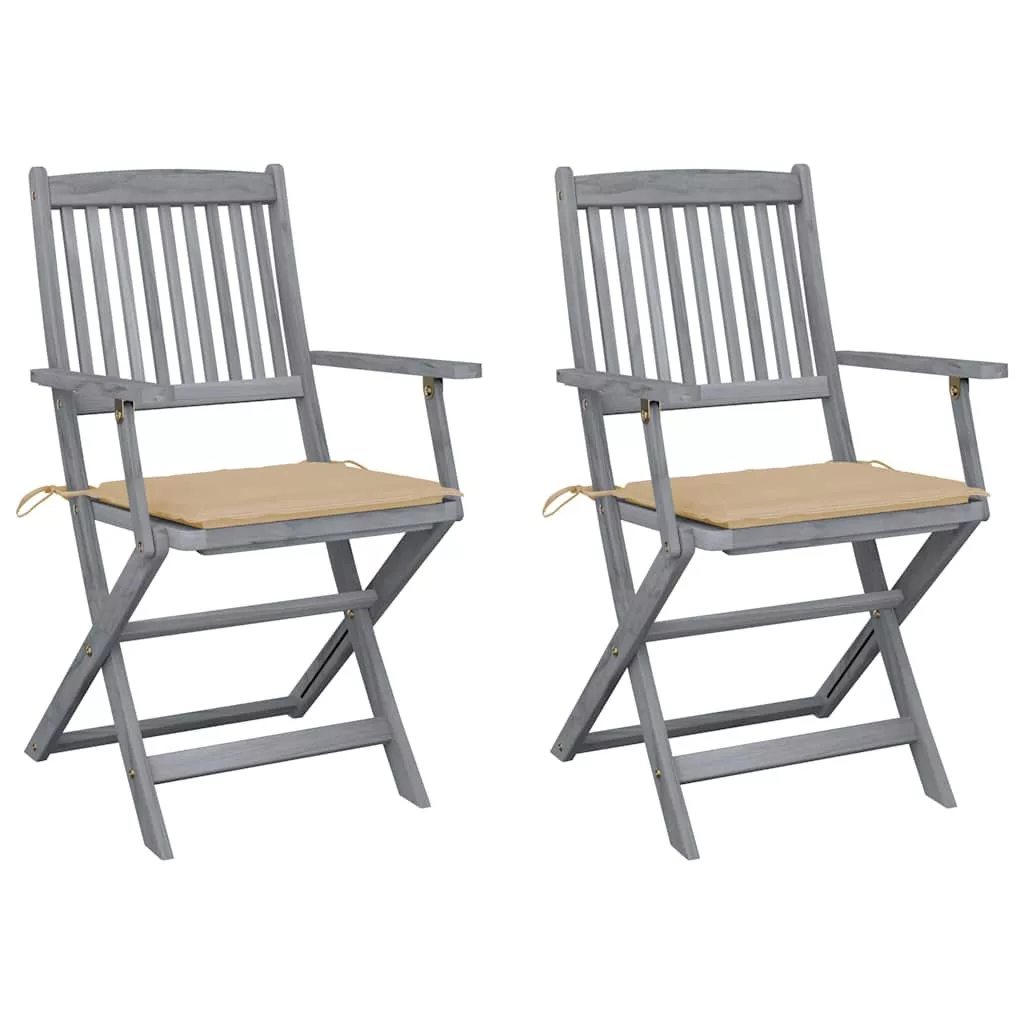 2 db összecsukható tömör akácfa kültéri szék párnával