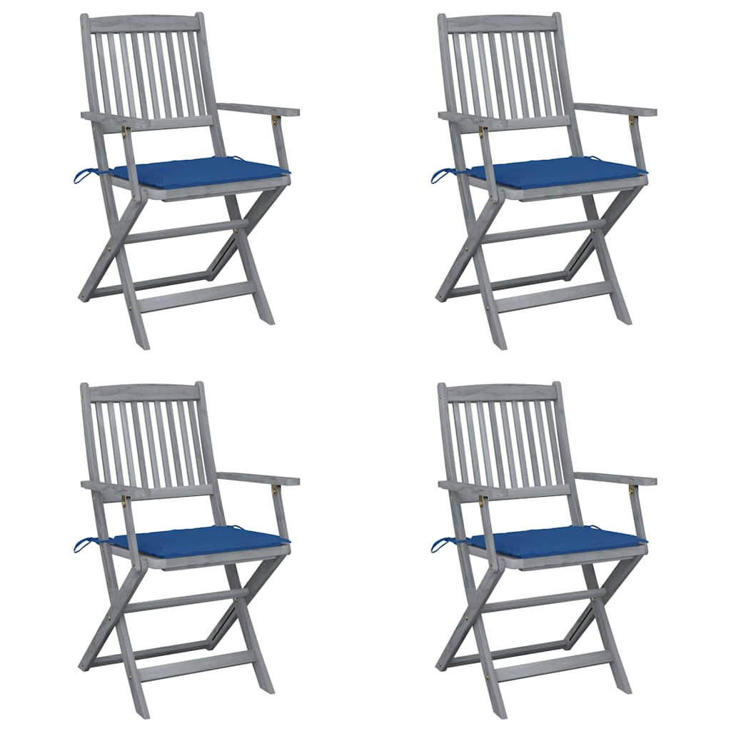 4 db összecsukható tömör akácfa kültéri szék párnával