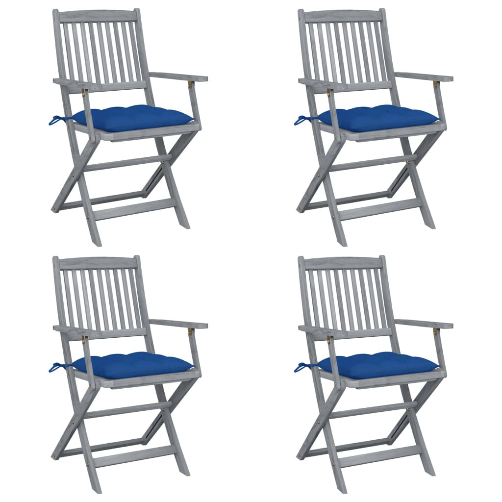 4 db összecsukható tömör akácfa kültéri szék párnával