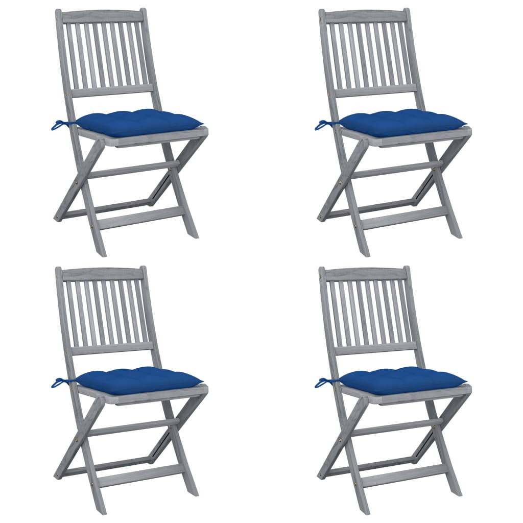 4 db összecsukható tömör akácfa kültéri szék párnával