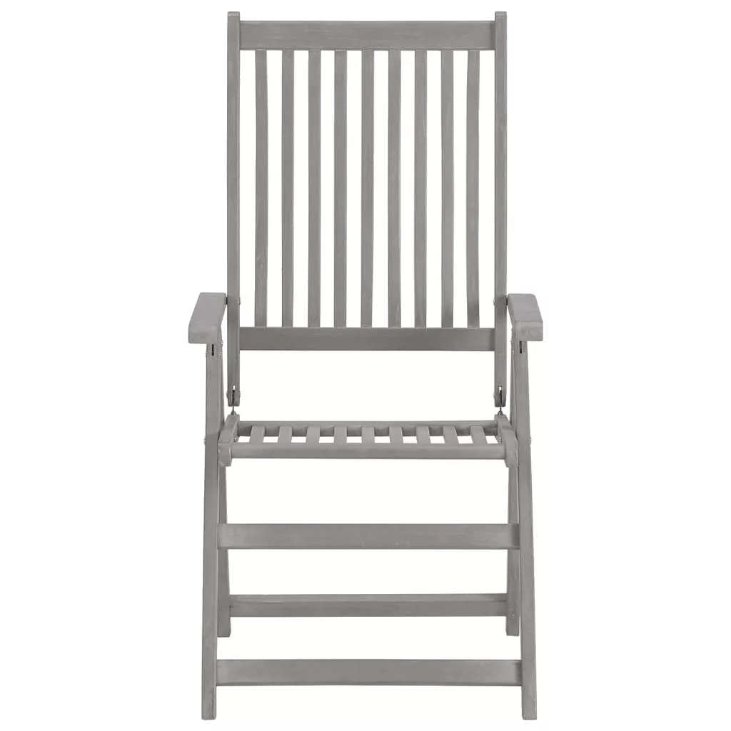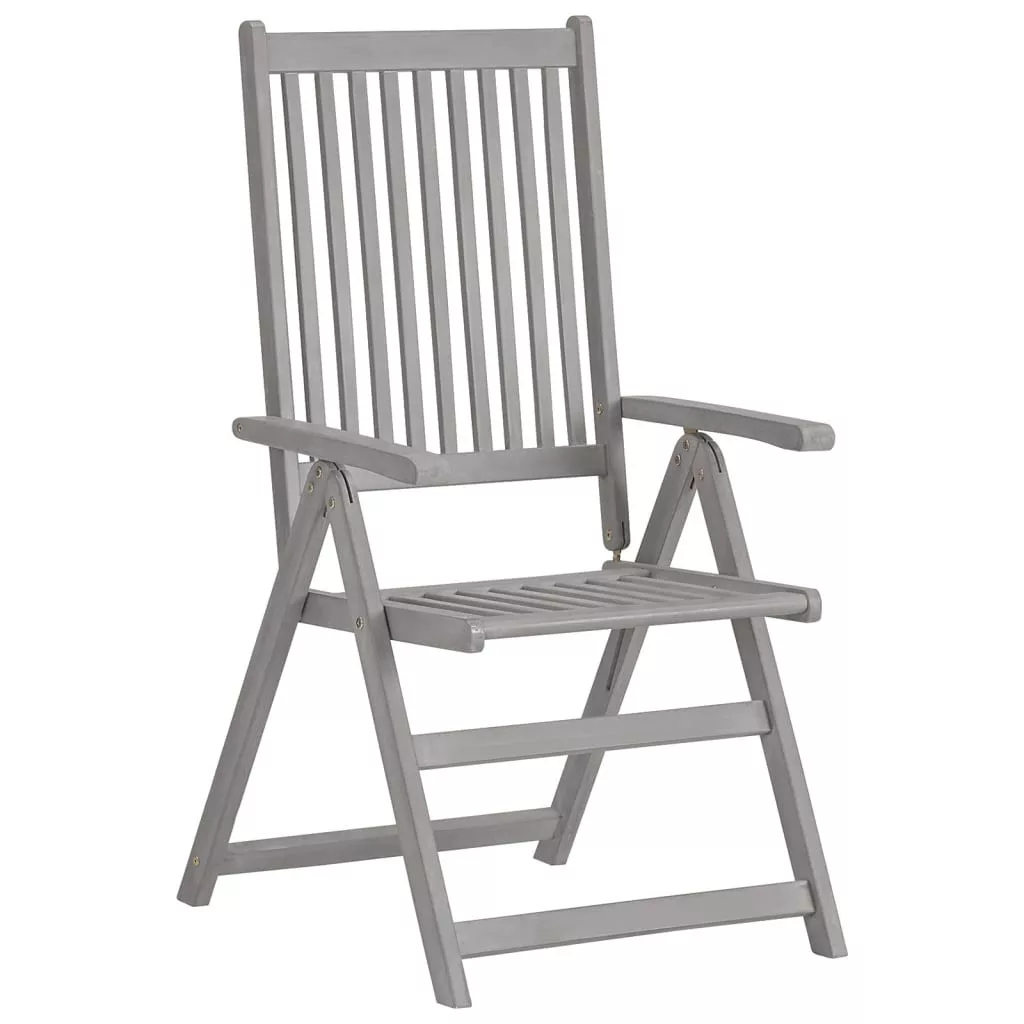 Ez a divatos, párnával ellátott, kerti dönthető szék szett extra kényelemmel ruházza fel külterét! Ezek a karosszékek antikolt szürke felületkezeléssel ellátott, tömör akácfából készültek, amely egy sűrű erezetű keményfa. Ezek a gyönyörű kialakítású kültéri székek stabilak, tartósak és figyelemfelkeltőek. A szék háttámlája 5-féle pozícióba dönthető, így mindig a legkényelmesebb helyzetbe állíthatja, saját igényeinek megfelelően. Sőt, a mellékelt párnák további kényelmet nyújtanak pihenés közben, valamint 100%, vízálló kezeléssel ellátott poliészterből készültek. A párnák egy-egy elasztikus pánttal és két-két kötözővel lettek ellátva, melyekkel a székekhez rögzíthetőek. Ezek a fából készült székek tökéletesek a családdal való étkezésekhez, vagy csak egyszerűen a kertben való pihenéshez. Maximum 110 kg ülésenként.