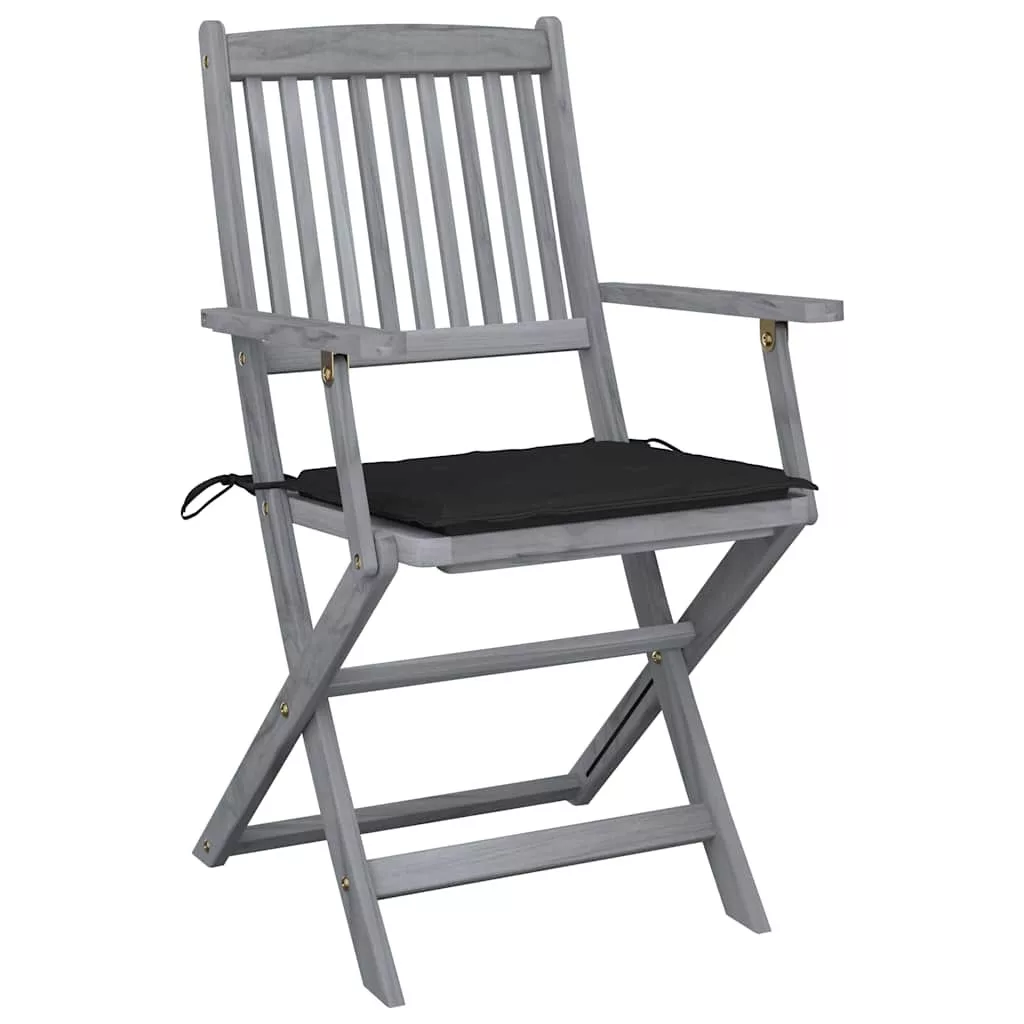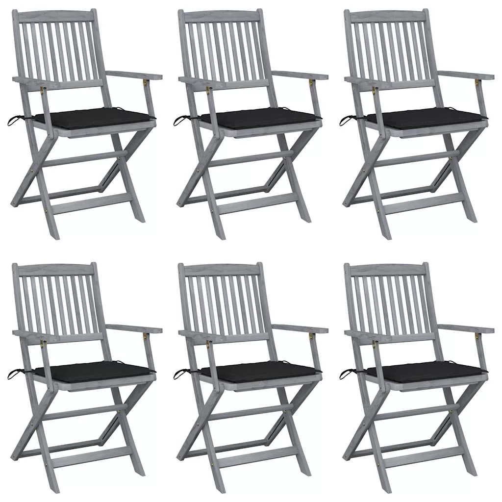 6 db összecsukható tömör akácfa kültéri szék párnákkal