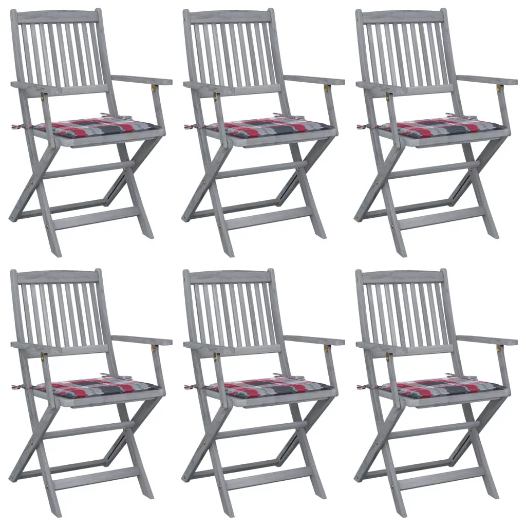 6 db összecsukható tömör akácfa kültéri szék párnákkal