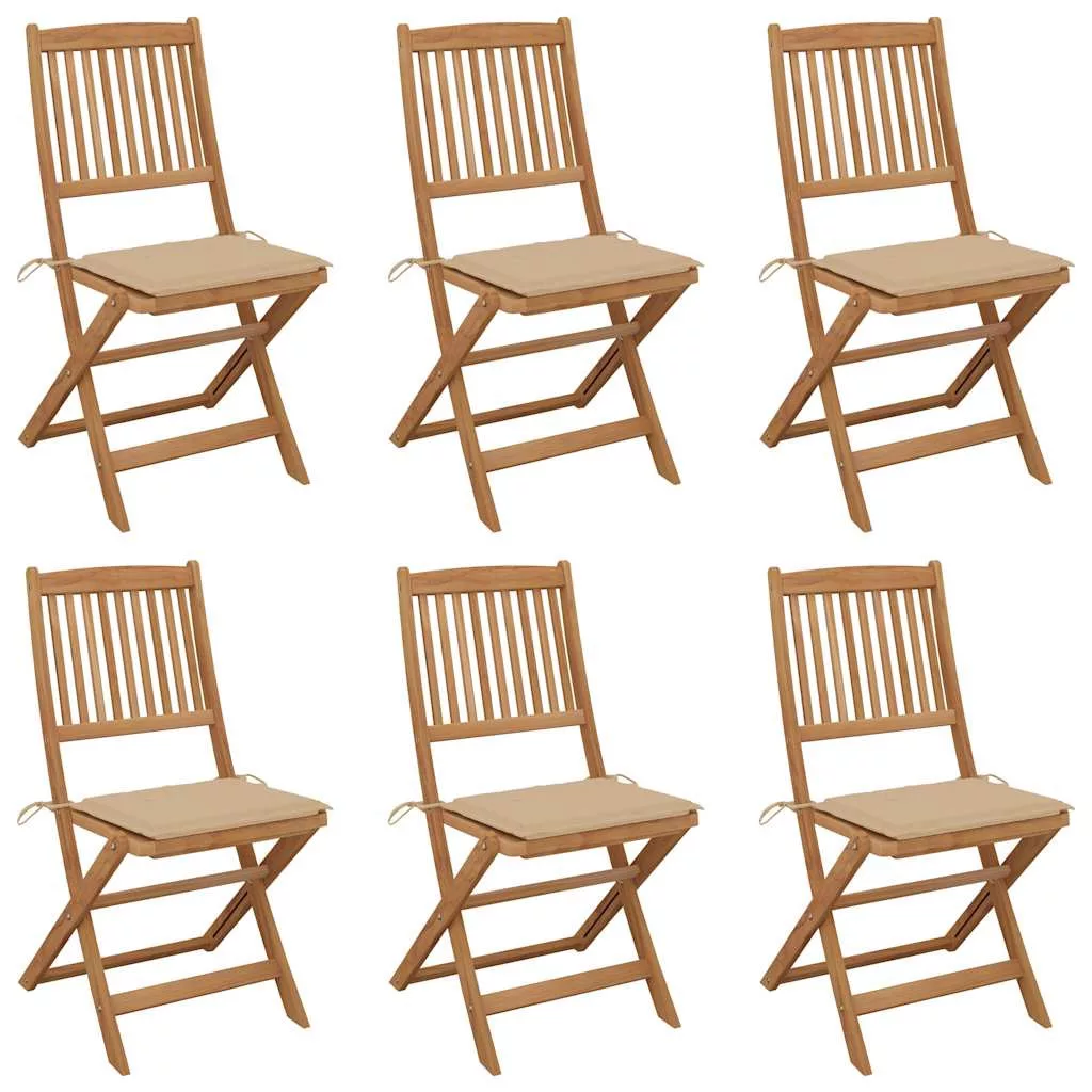 6 db összecsukható tömör akácfa kerti szék párnával