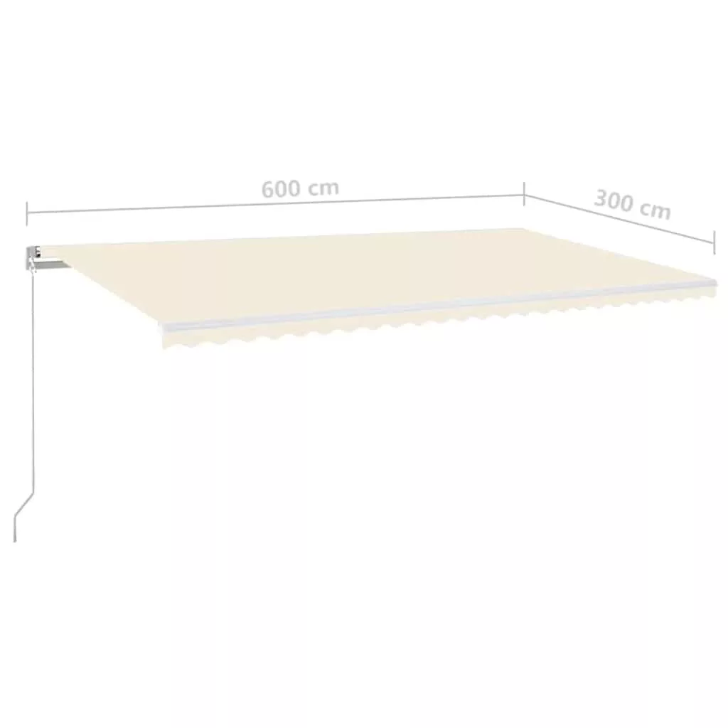 krémszínű kézzel kihúzható LED-es napellenző 600 x 300 cm