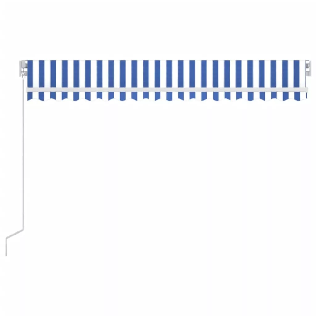 kék és fehér kézzel kihúzható LED-es napellenző 450 x 350 cm