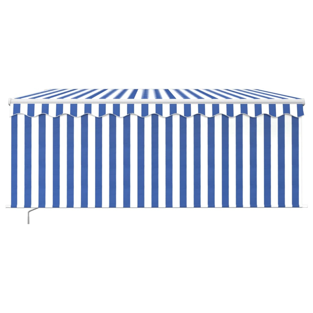 kék/fehér LED-es kézzel kihúzható napellenző redőnnyel 3x2,5 m