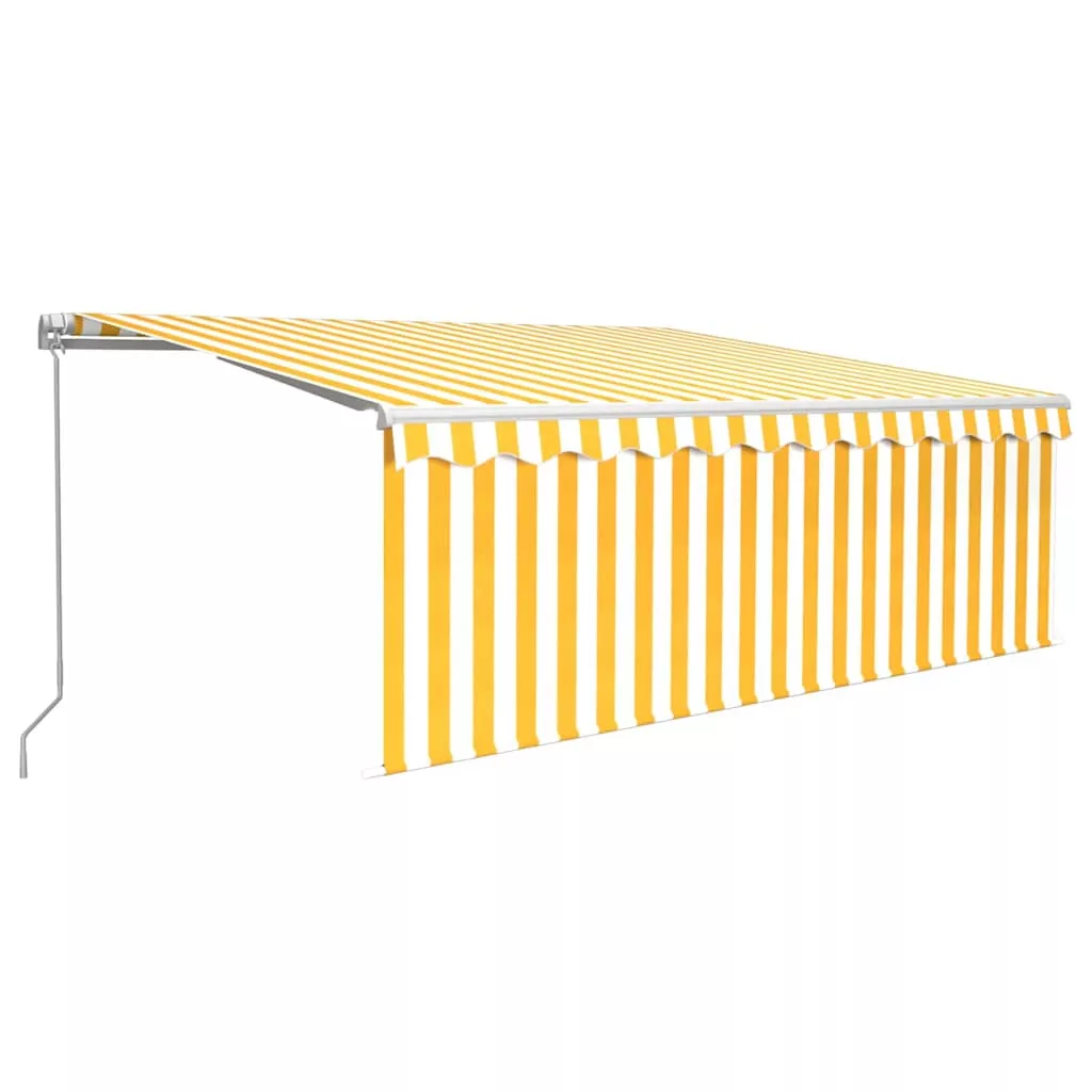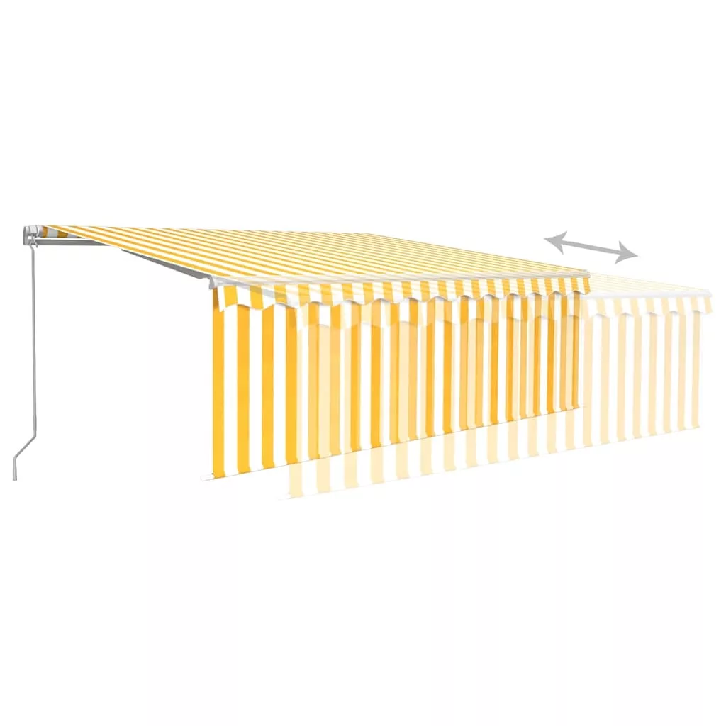 sárga-fehér kézzel kihúzható LED-es napellenző redőnnyel 4x3 m